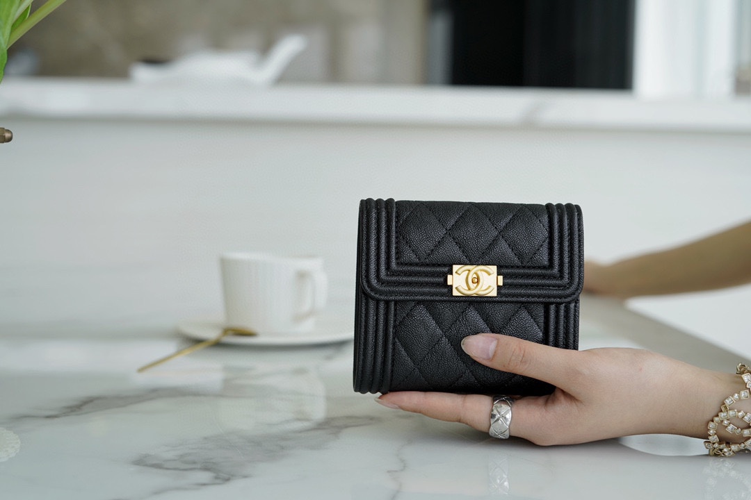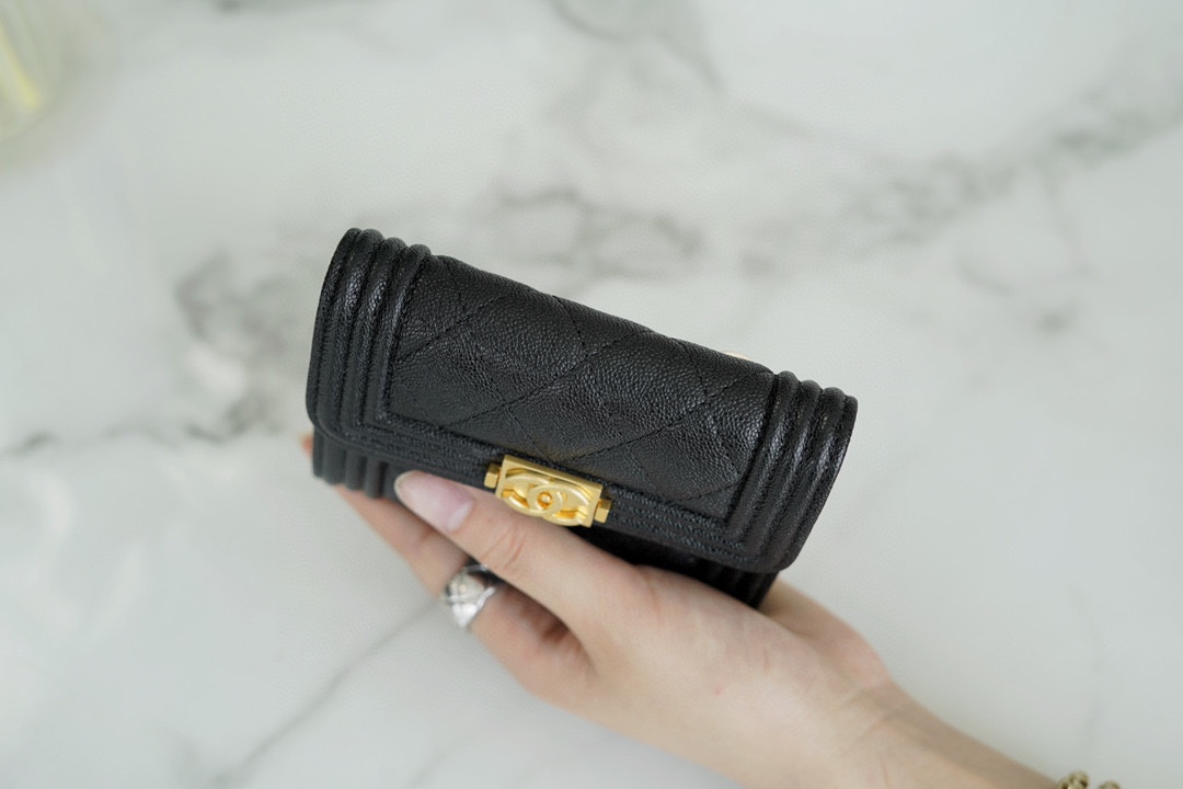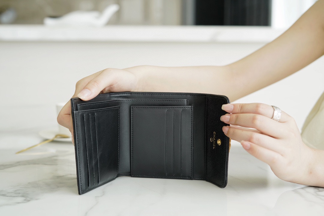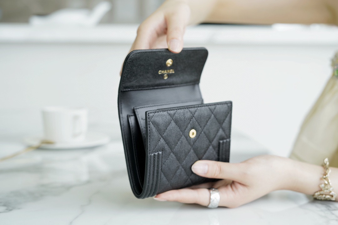 샤넬 클래식 캐비어 플랩 지갑 골드
