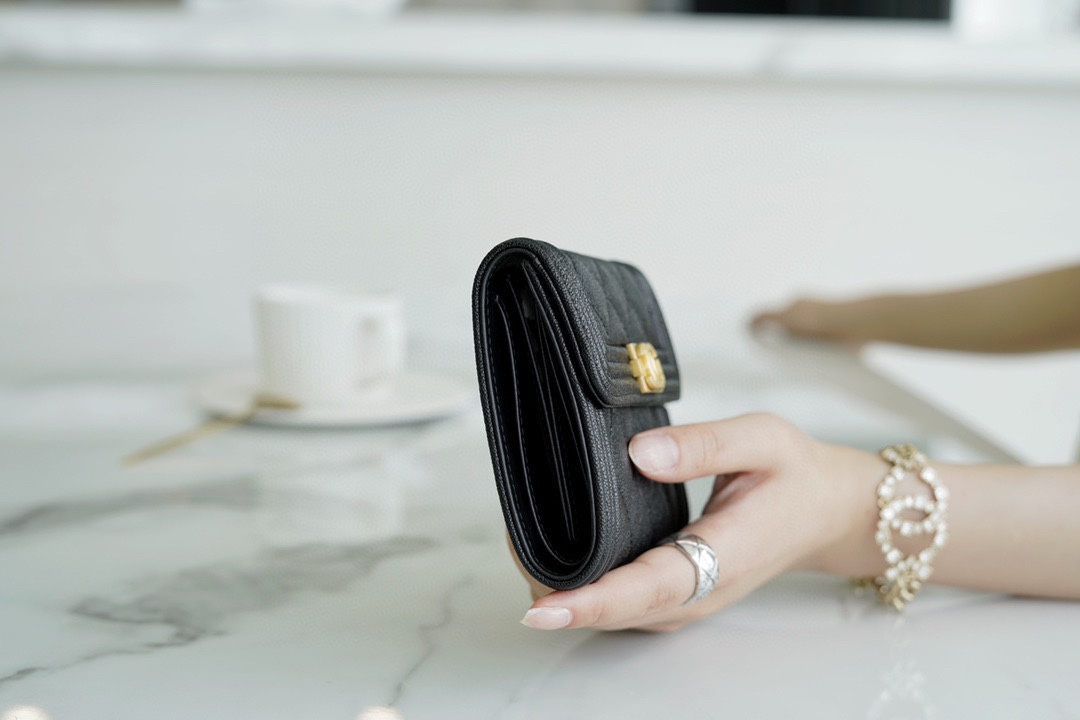 샤넬 펄리 램스킨 골드 메탈 블랙 체인 지갑 25SS
