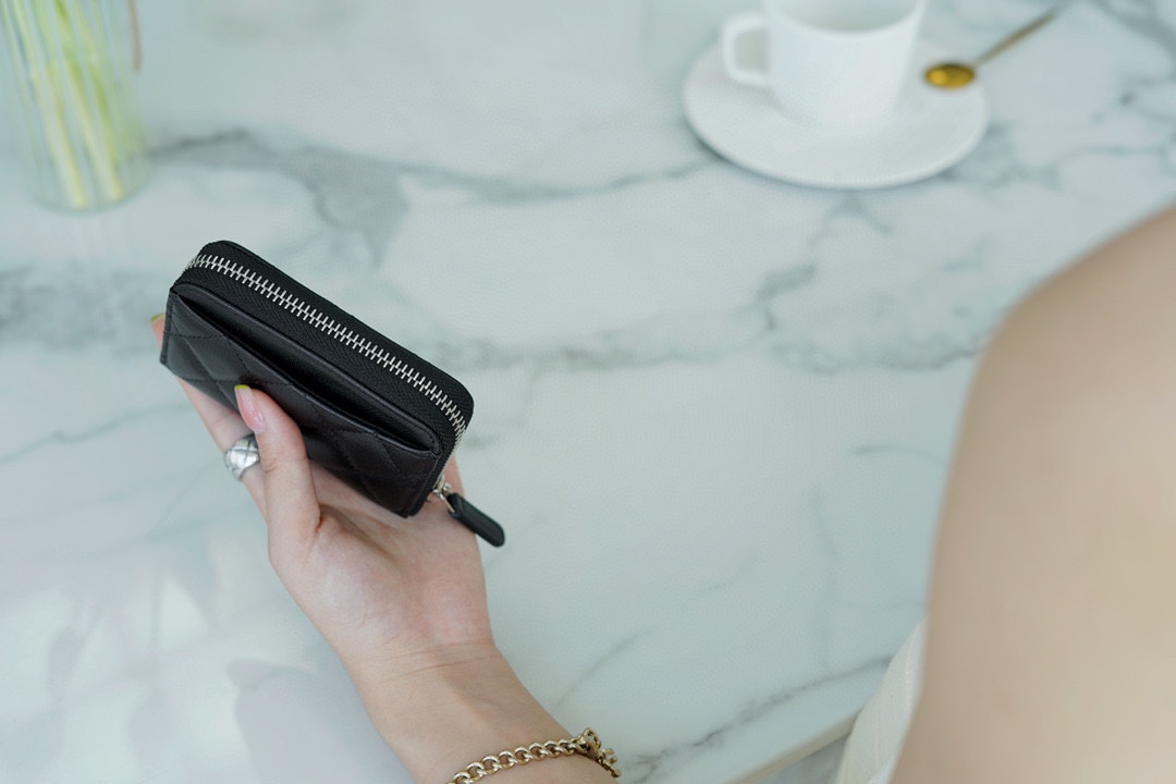샤넬 클래식 그레인드 카프스킨 지퍼 카드 홀더
