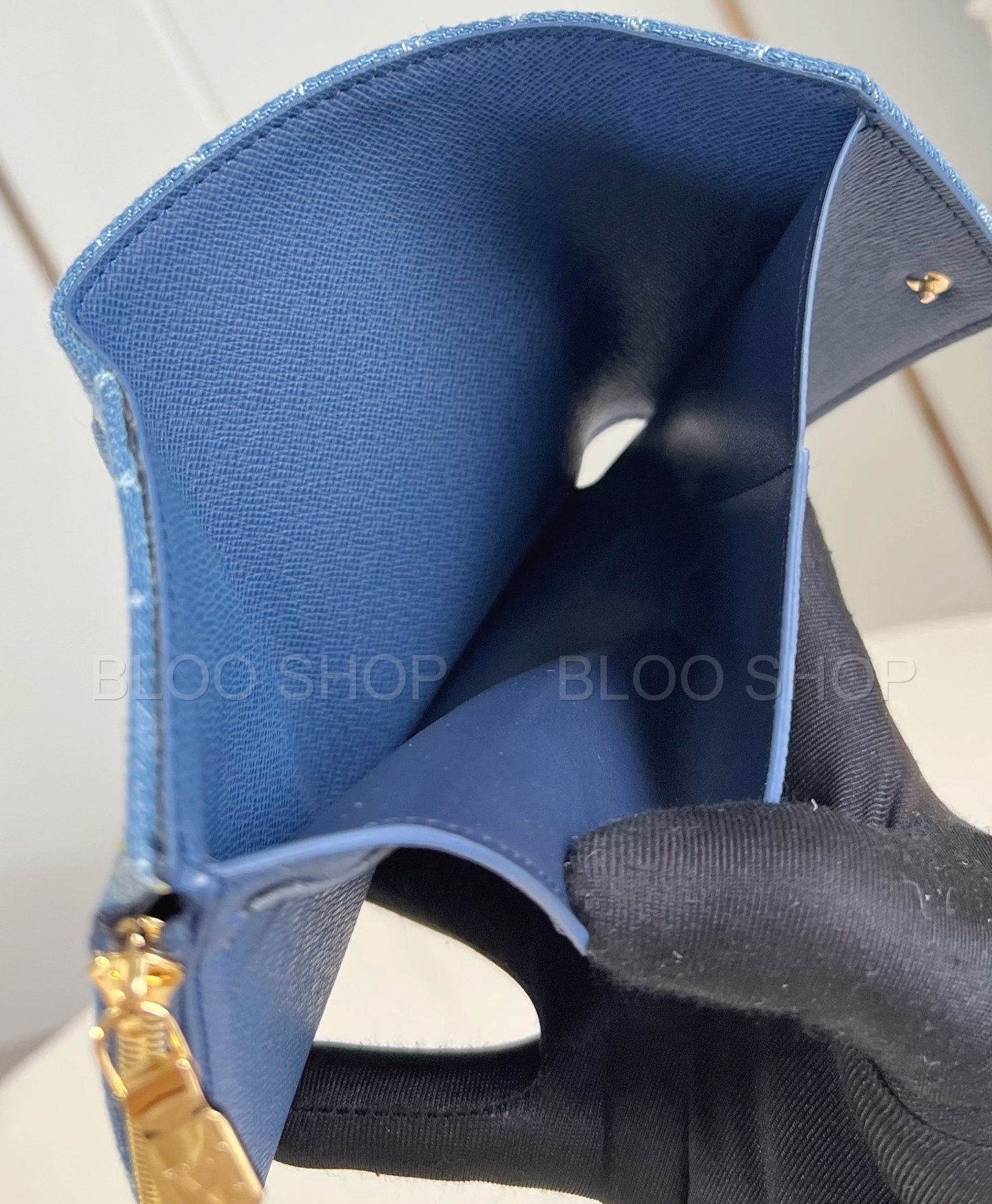 샤넬 19 플랩 카드 홀더 스카이 블루