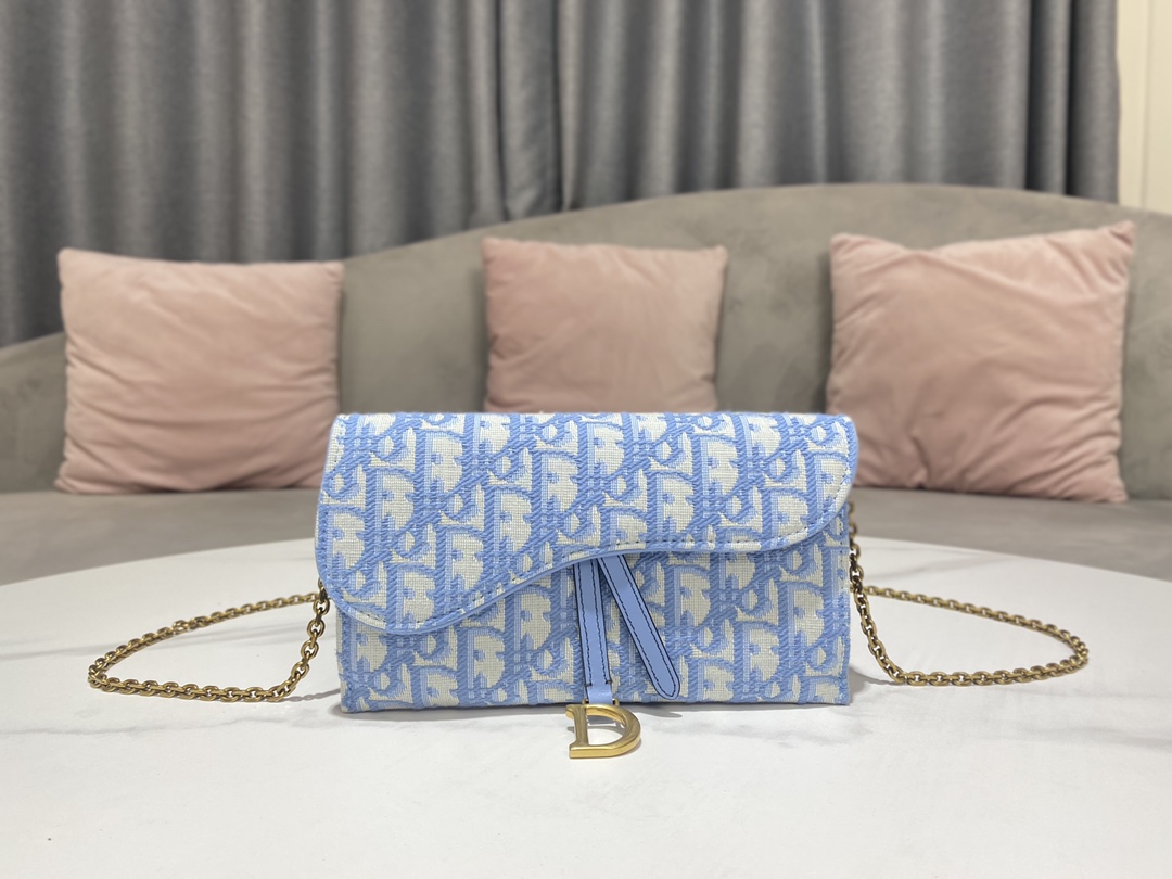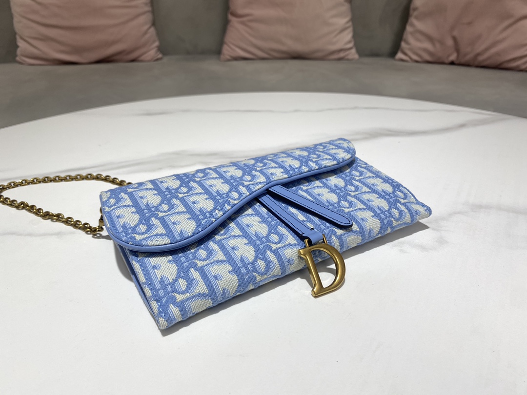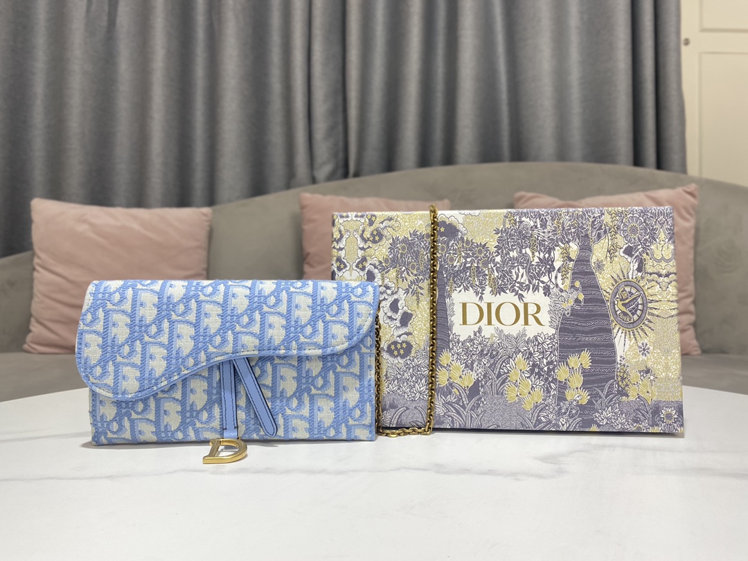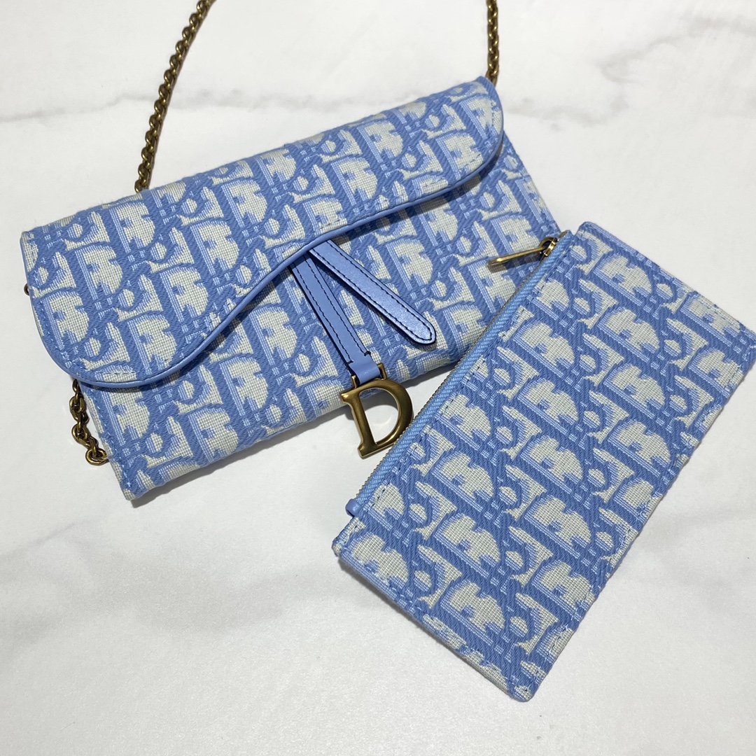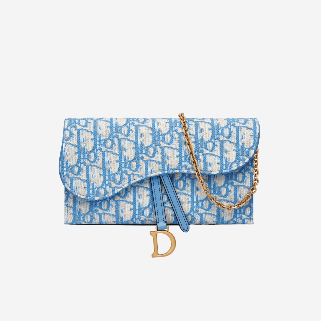 디올 오블리크 새들 플랩 카드 지갑 블랙