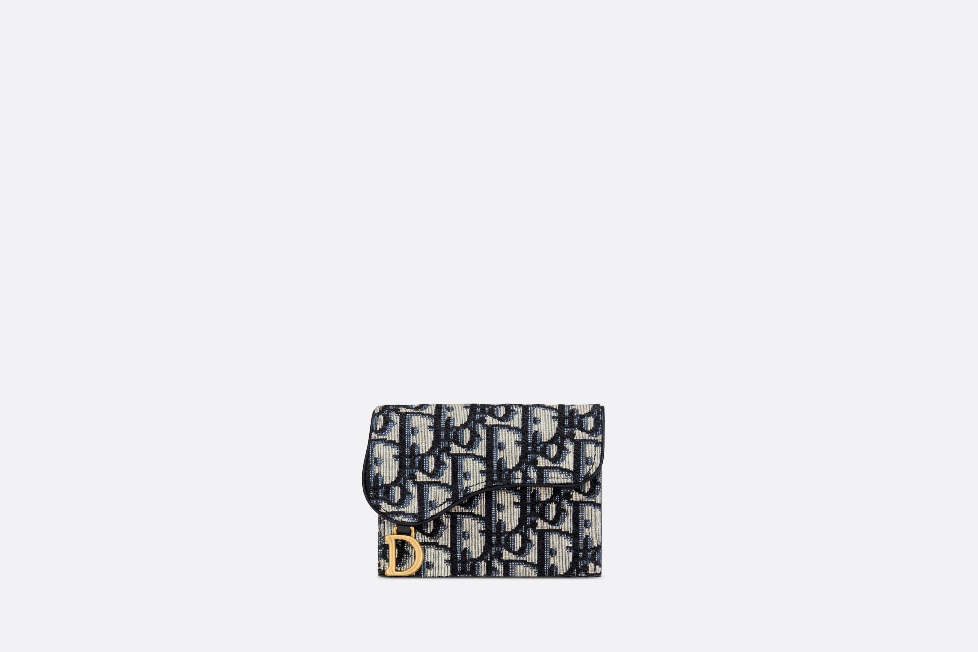 디올 오블리크 새들 장지갑 블루
