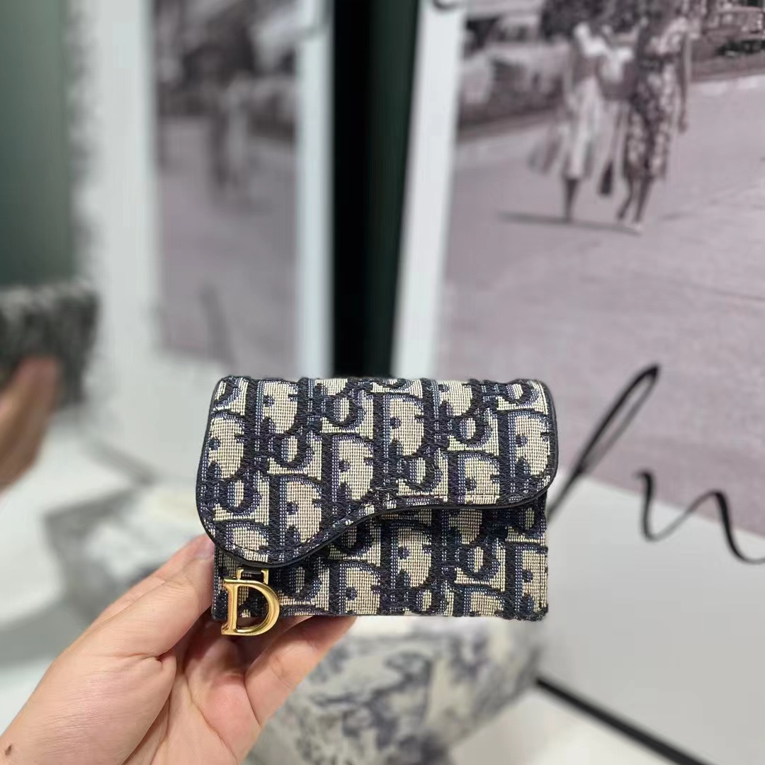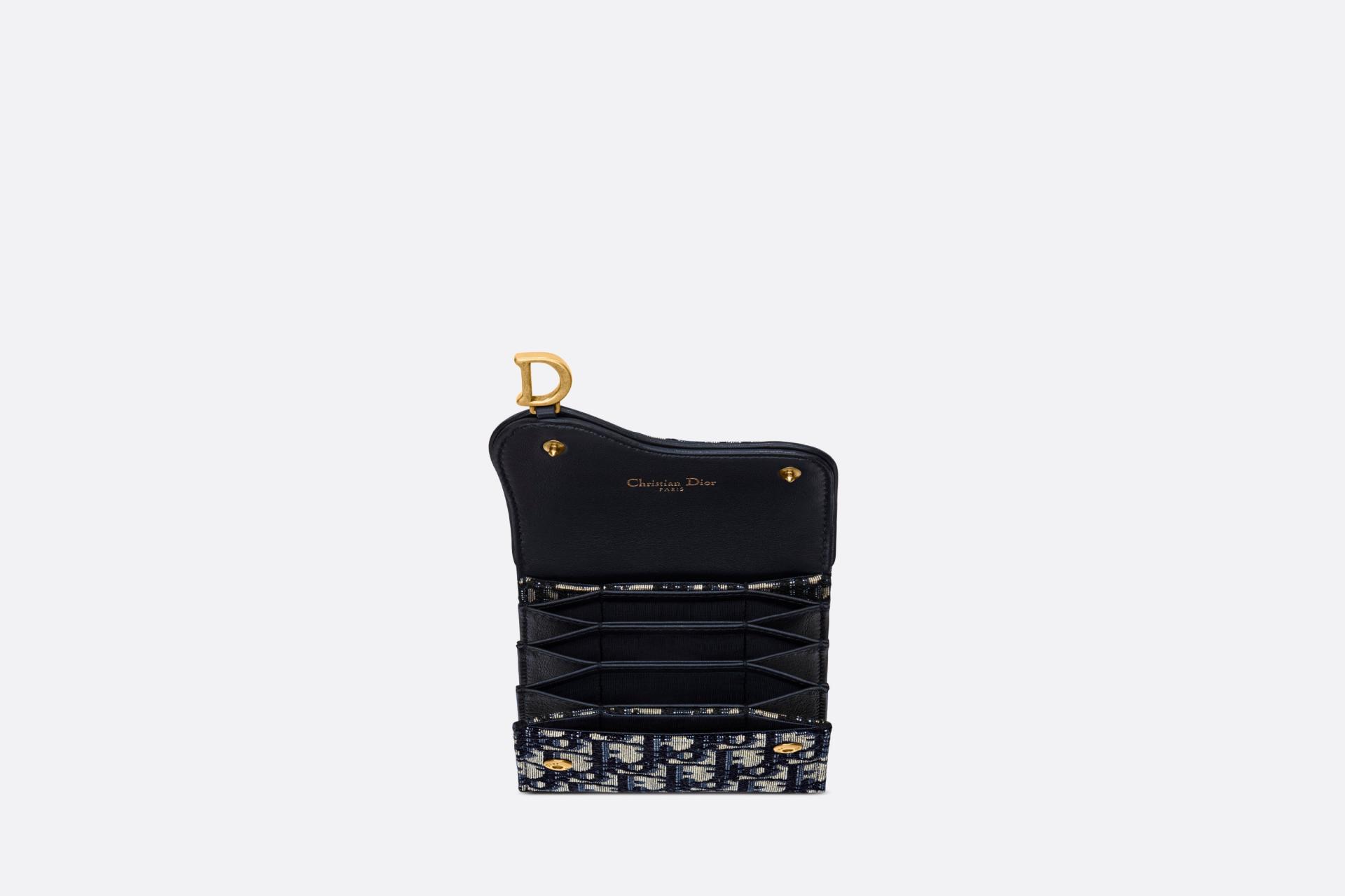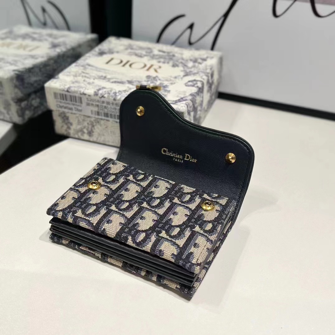 디올 오블리크 새들 플랩 카드 지갑 블랙