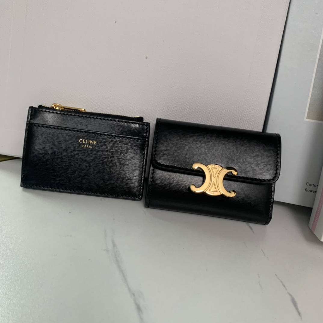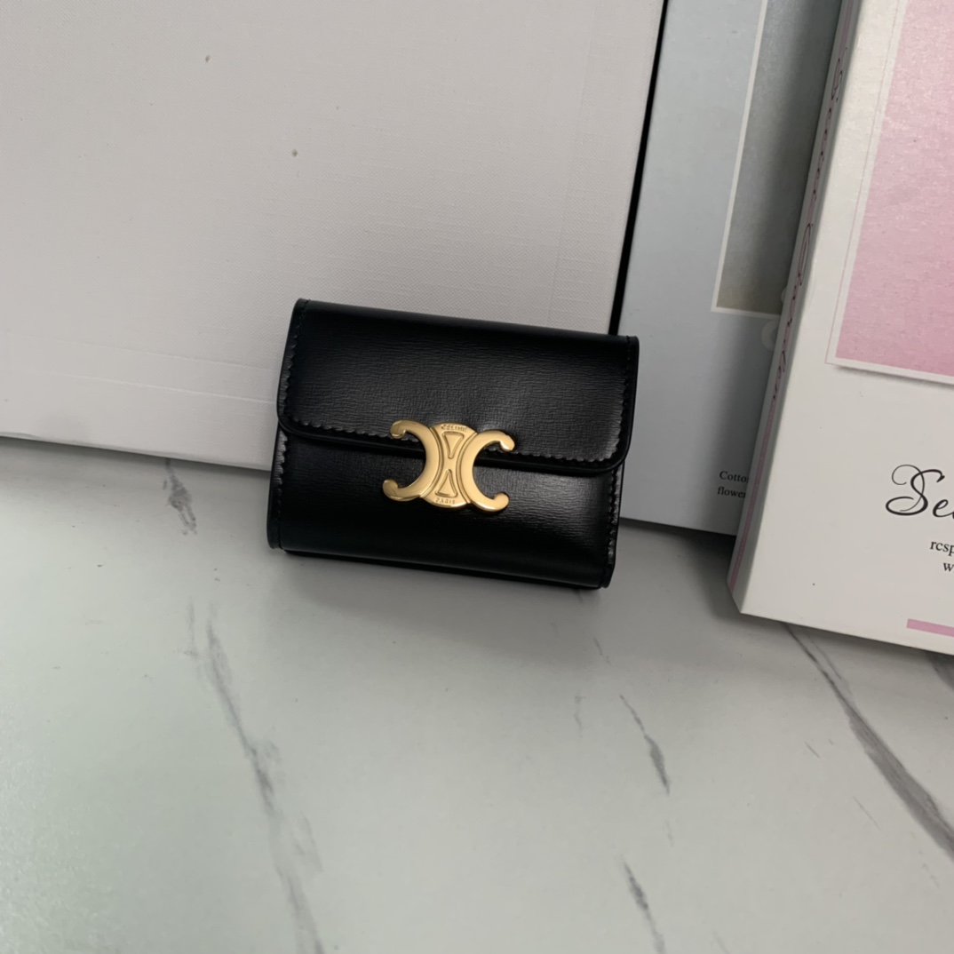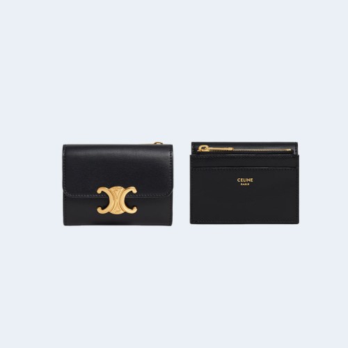 셀린느 트리옹프 동전 컴팩트 지갑 골드블랙