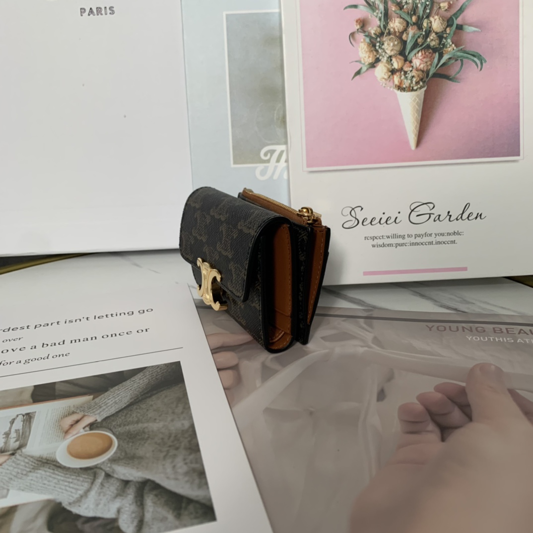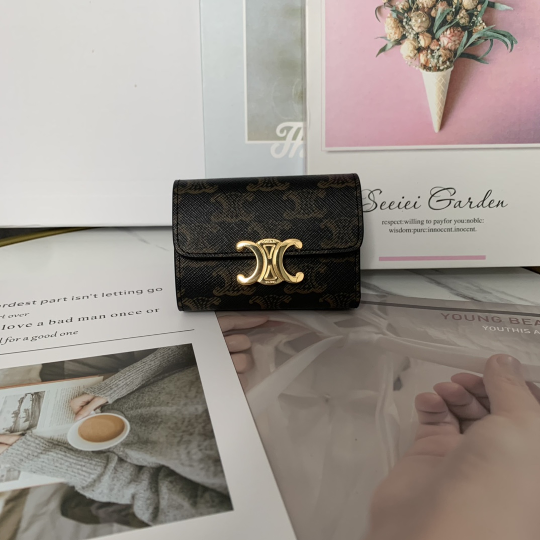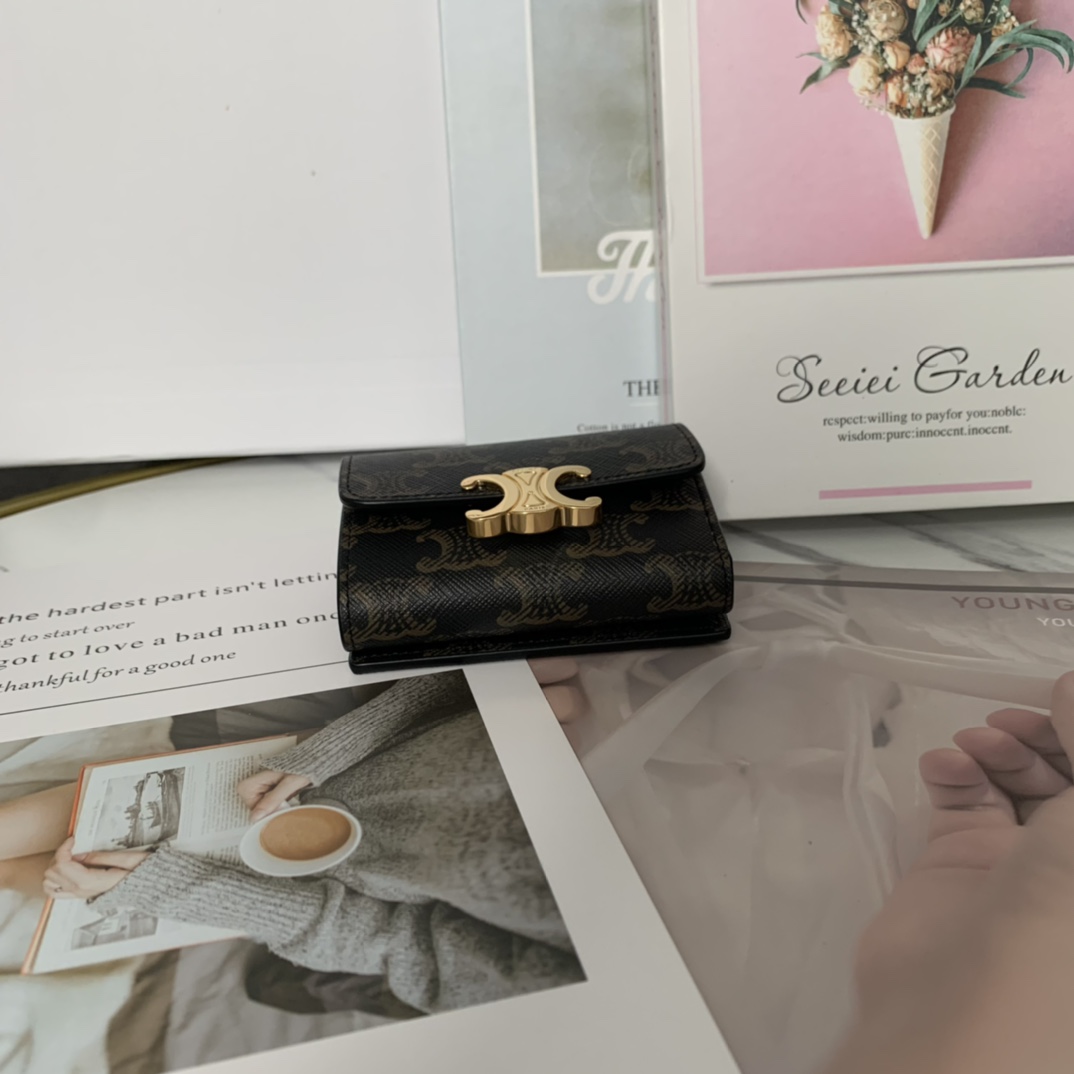 셀린느 트리옹프 동전 컴팩트 지갑 골드블랙
