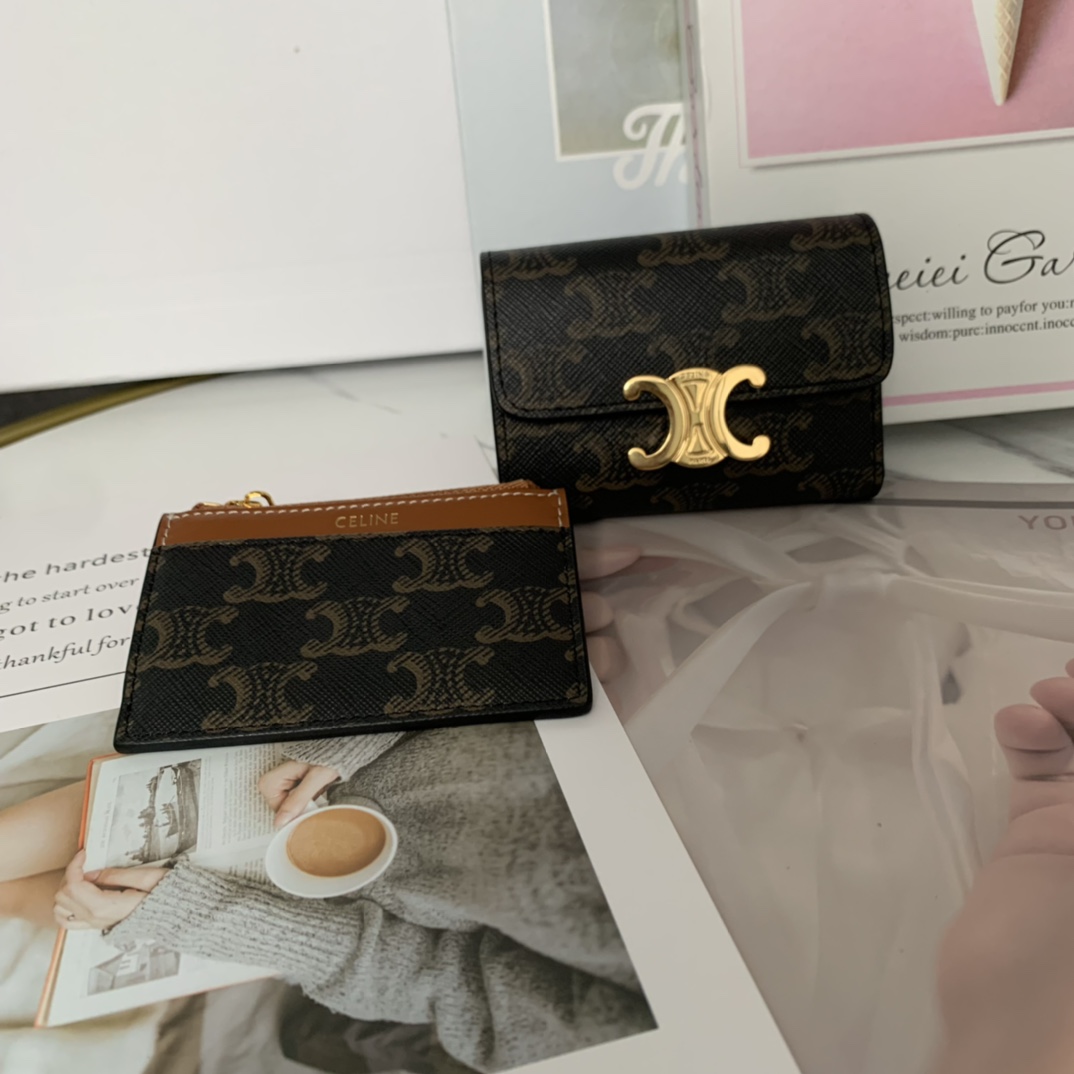 셀린느 트리옹프 캔버스 동전 컴팩트 지갑 탠