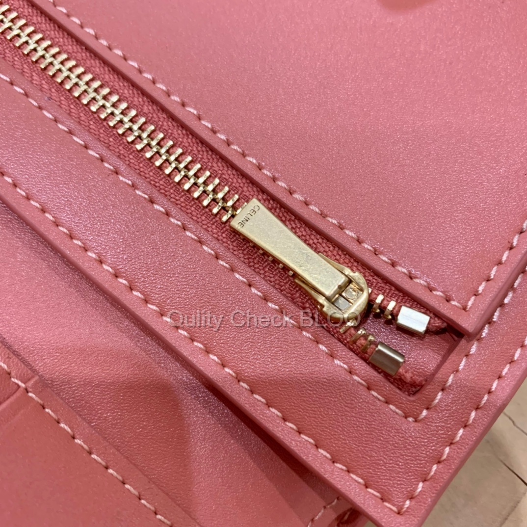 셀린느 미디움 핑크 스트랩 지갑 그레이