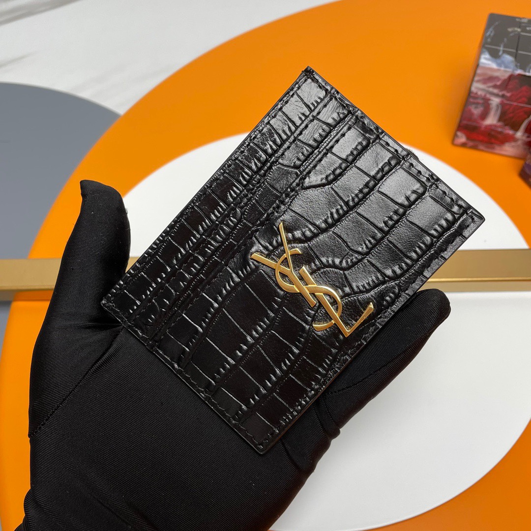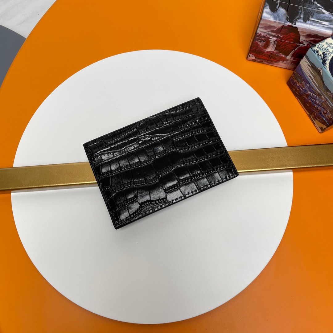 생로랑 크로커다일 카산드라 카드 케이스 블랙