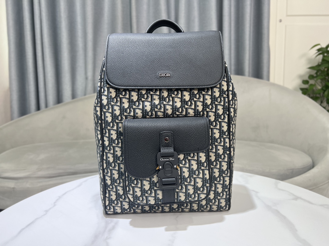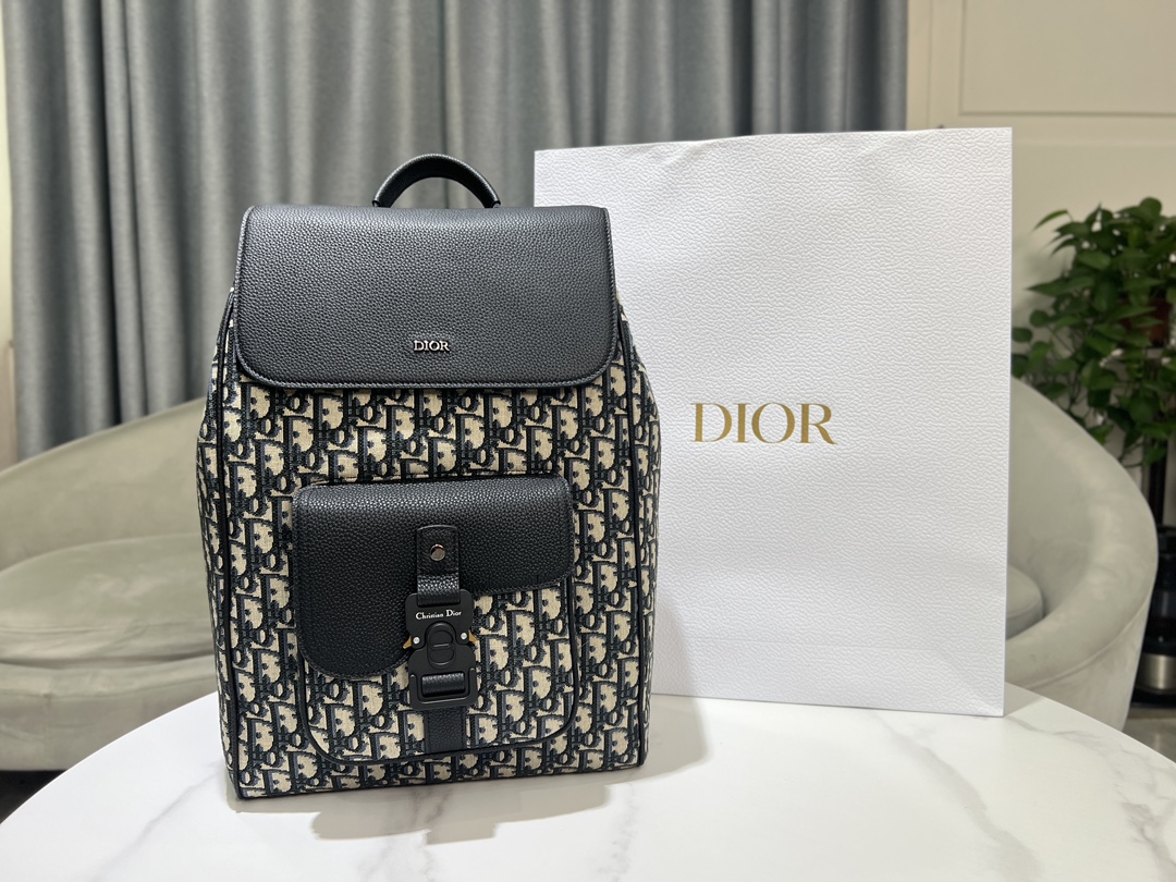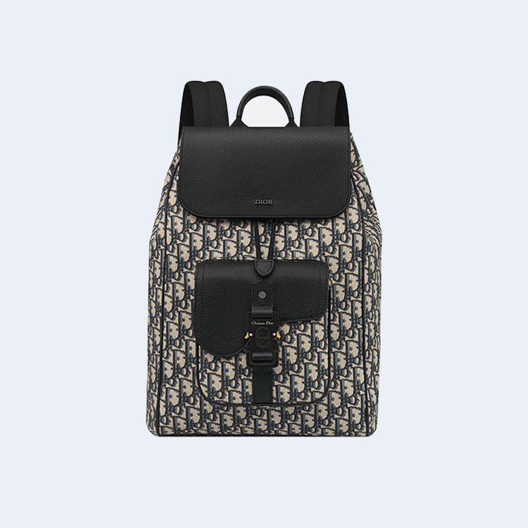 디올 Dior 8 플랩 블랙 오블리크 자카드 백팩