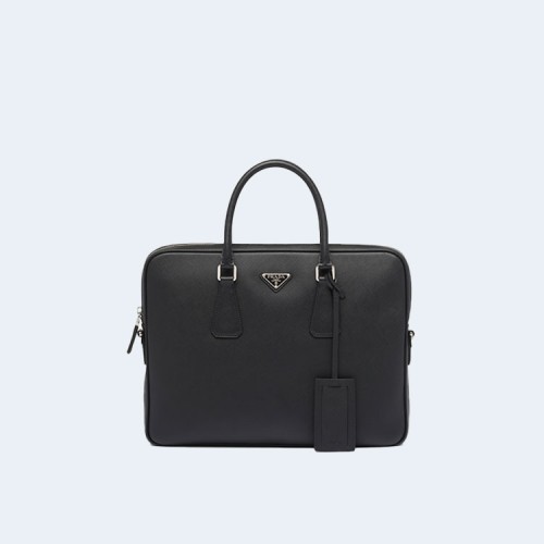 프라다 사피아노 삼각로고 레더 브리프케이스 블랙