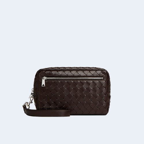 보테가 베네타 인트레치아토 손목 스트랩 파우치 다크 브라운