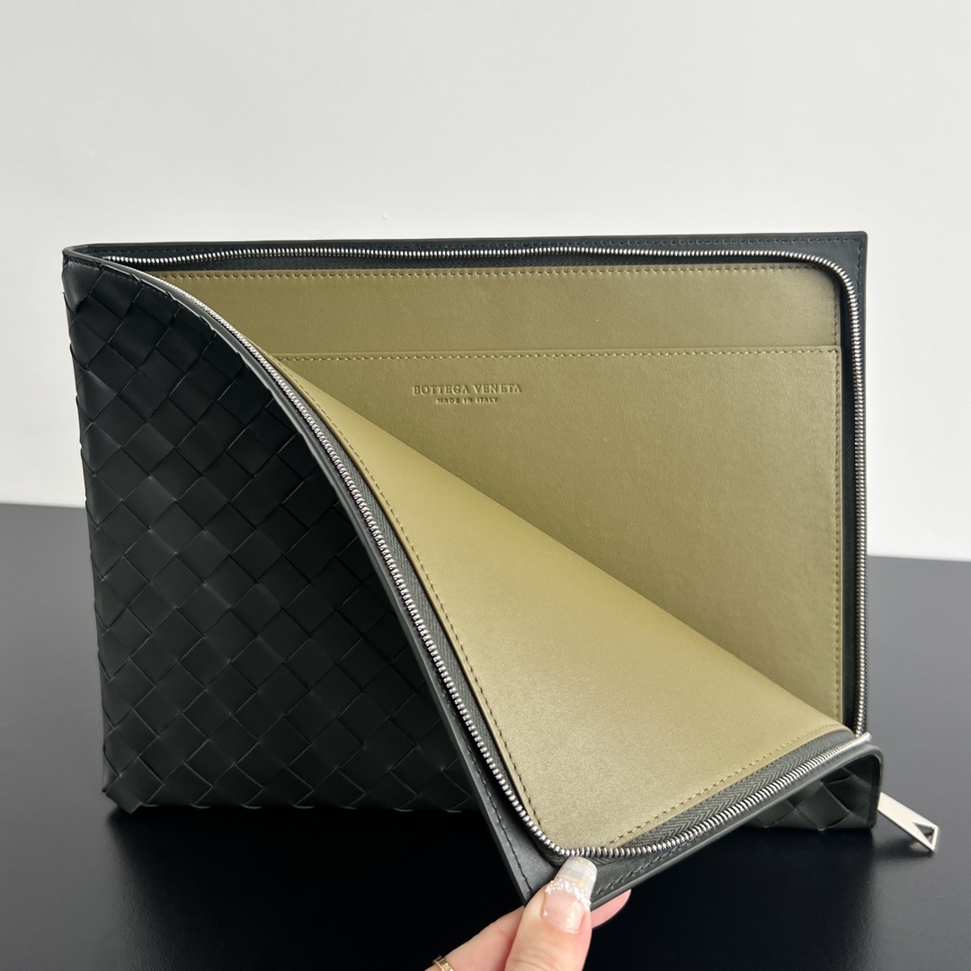 보테가 베네타 하프집 파우치 골드 인 블랙
