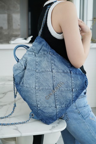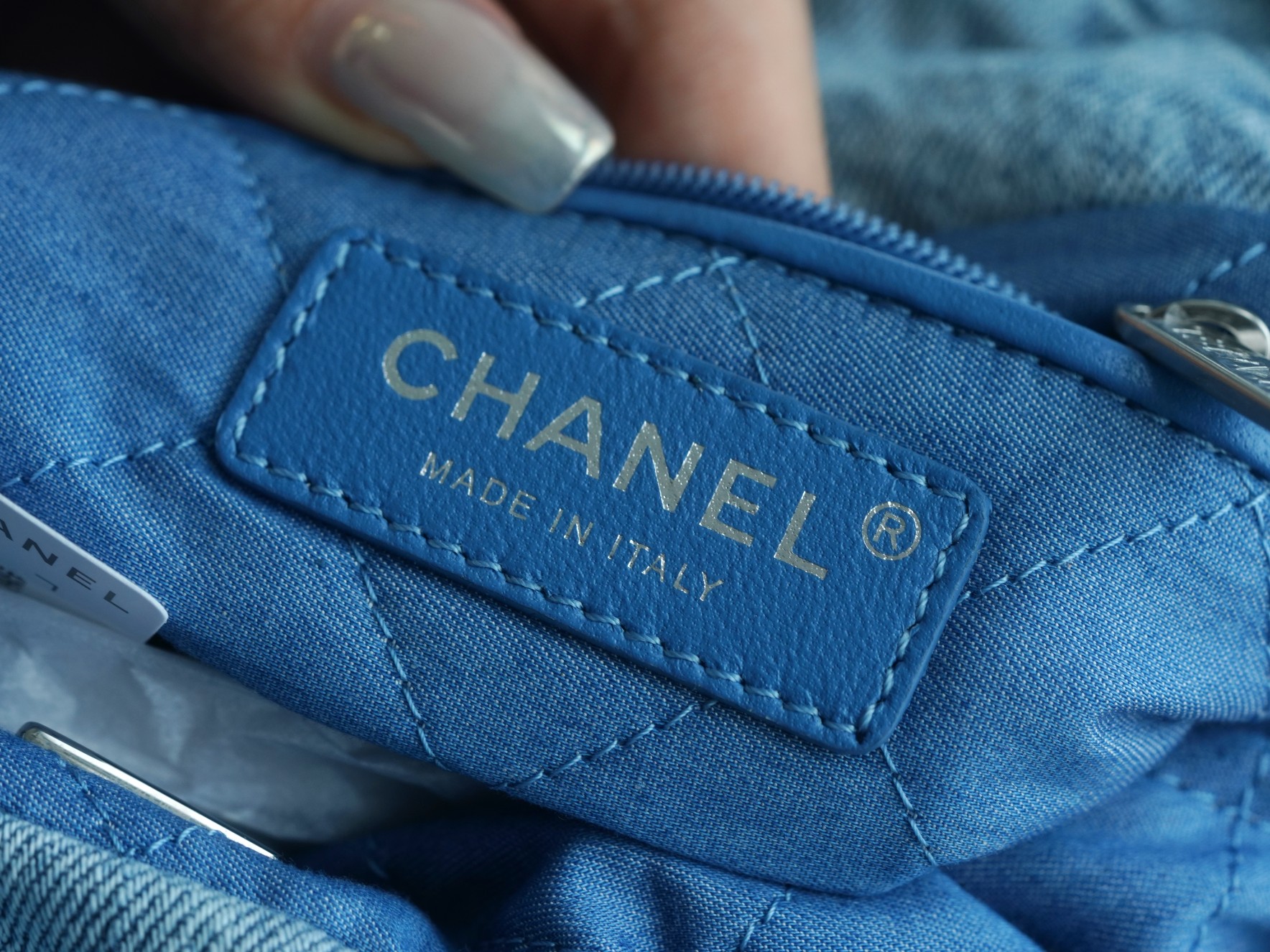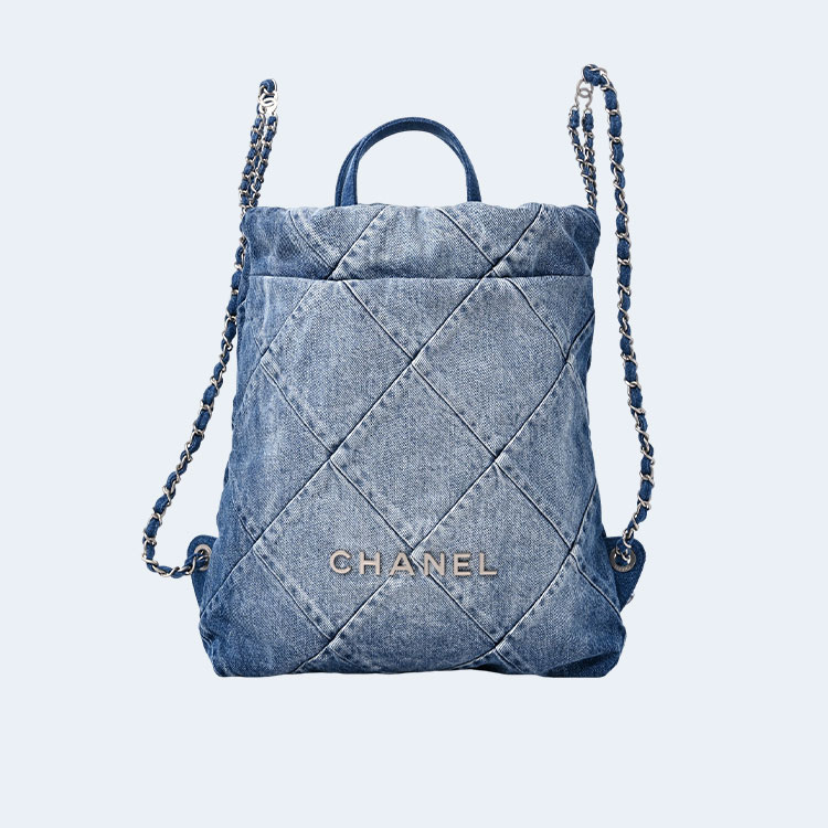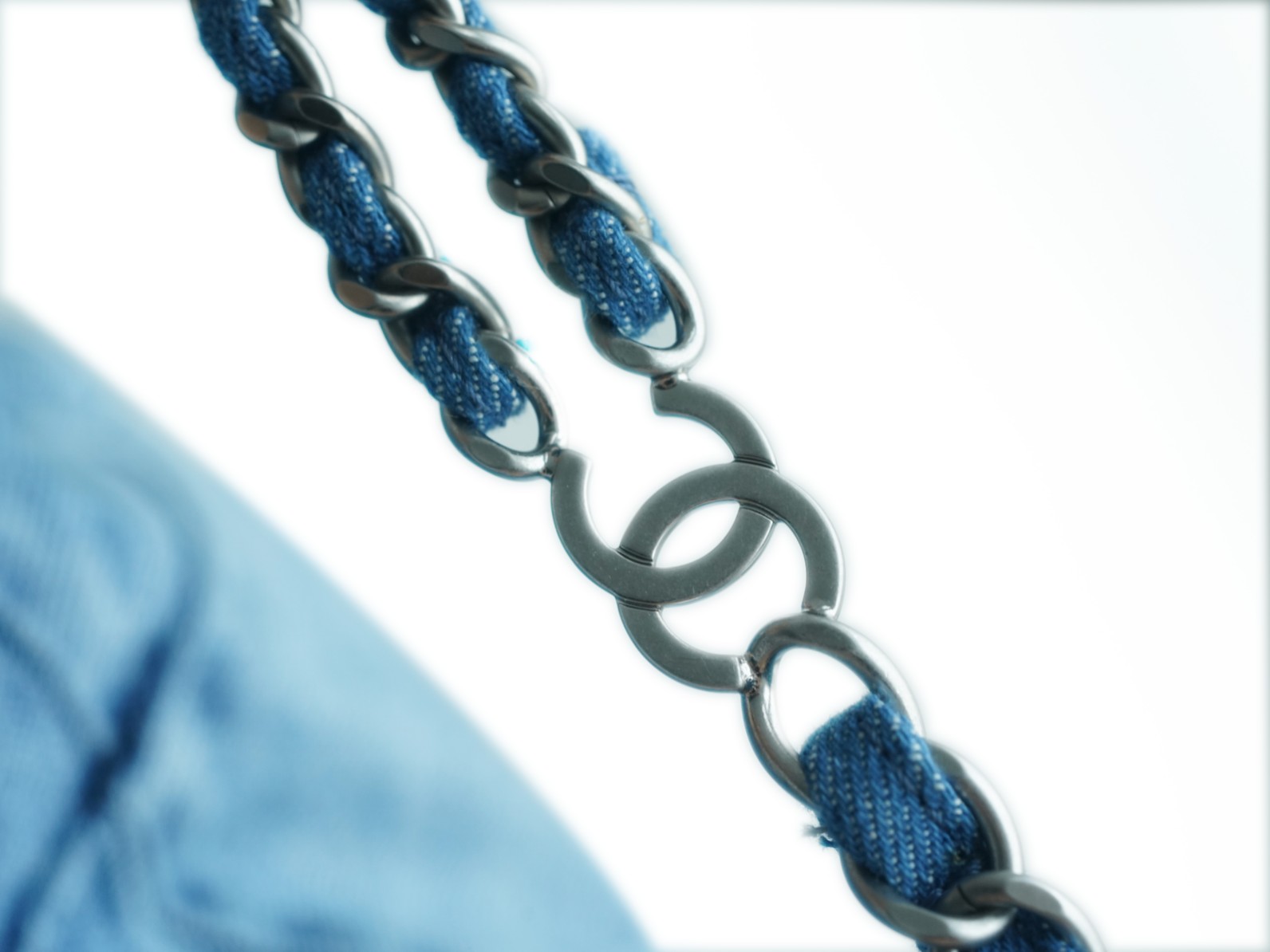 샤넬 19 플랩 카드 홀더 스카이 블루