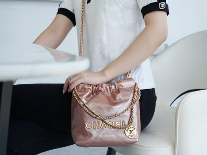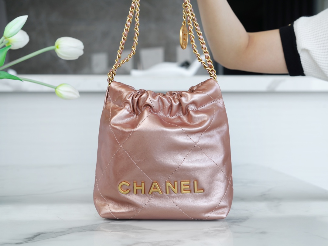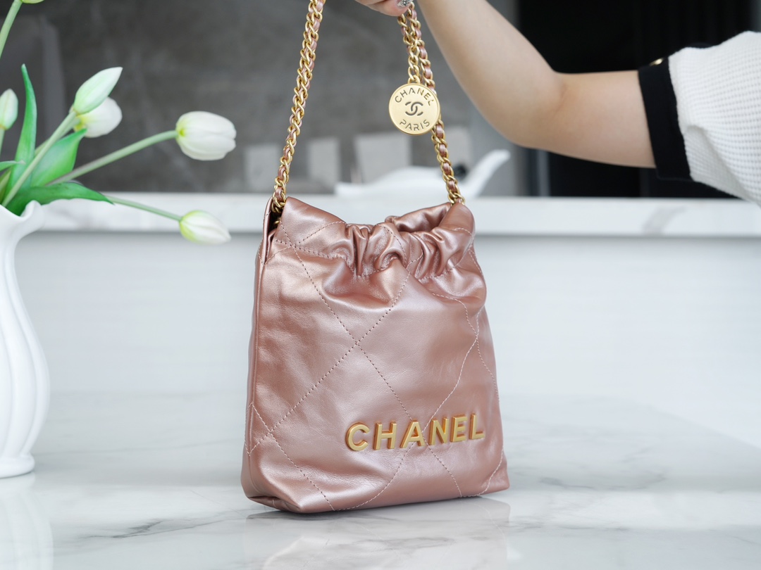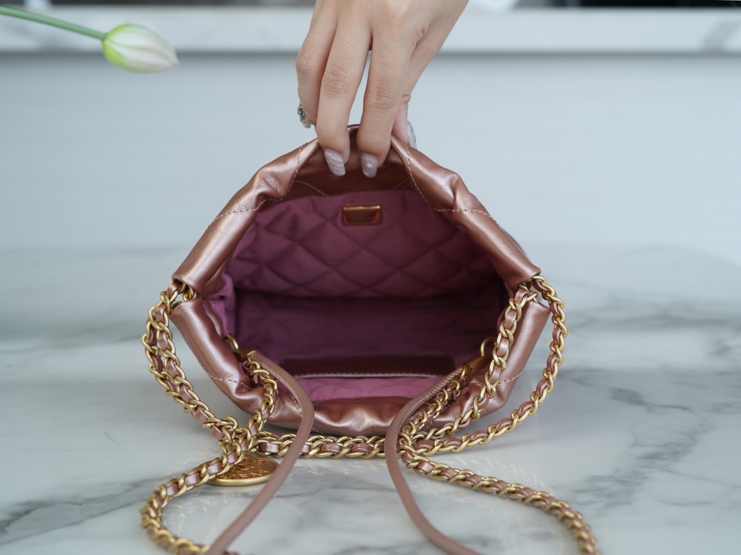 샤넬 22백 미니 카프스킨 로즈골드