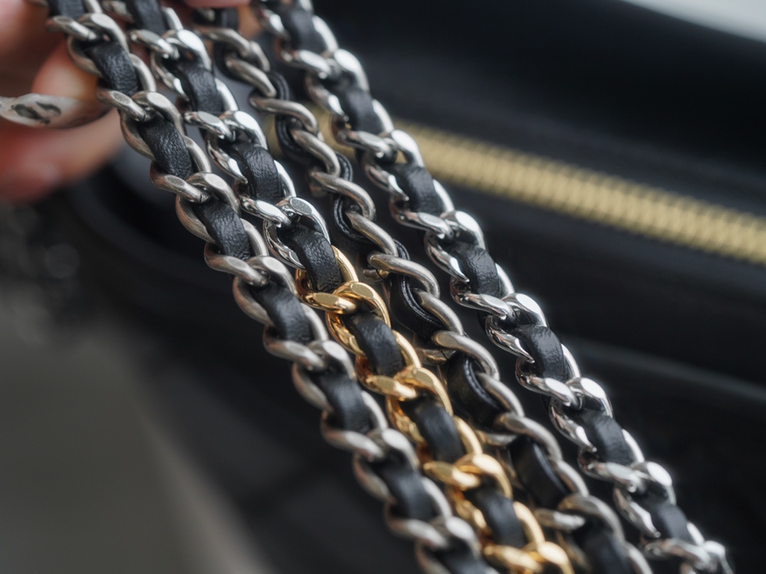 샤넬 펄리 램스킨 골드 메탈 블랙 체인 지갑 25SS