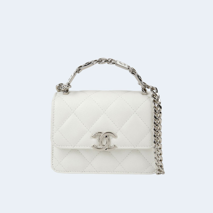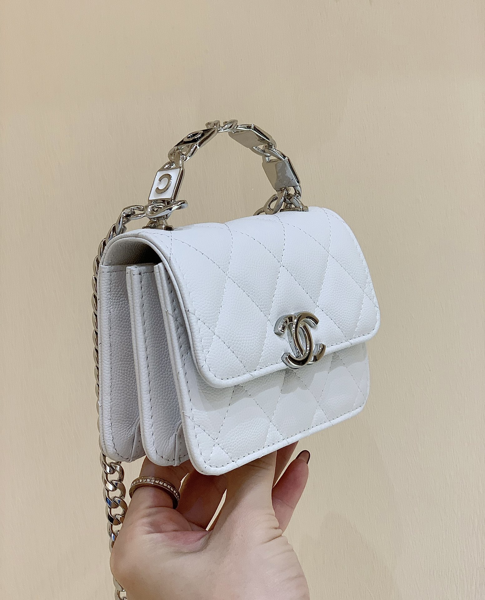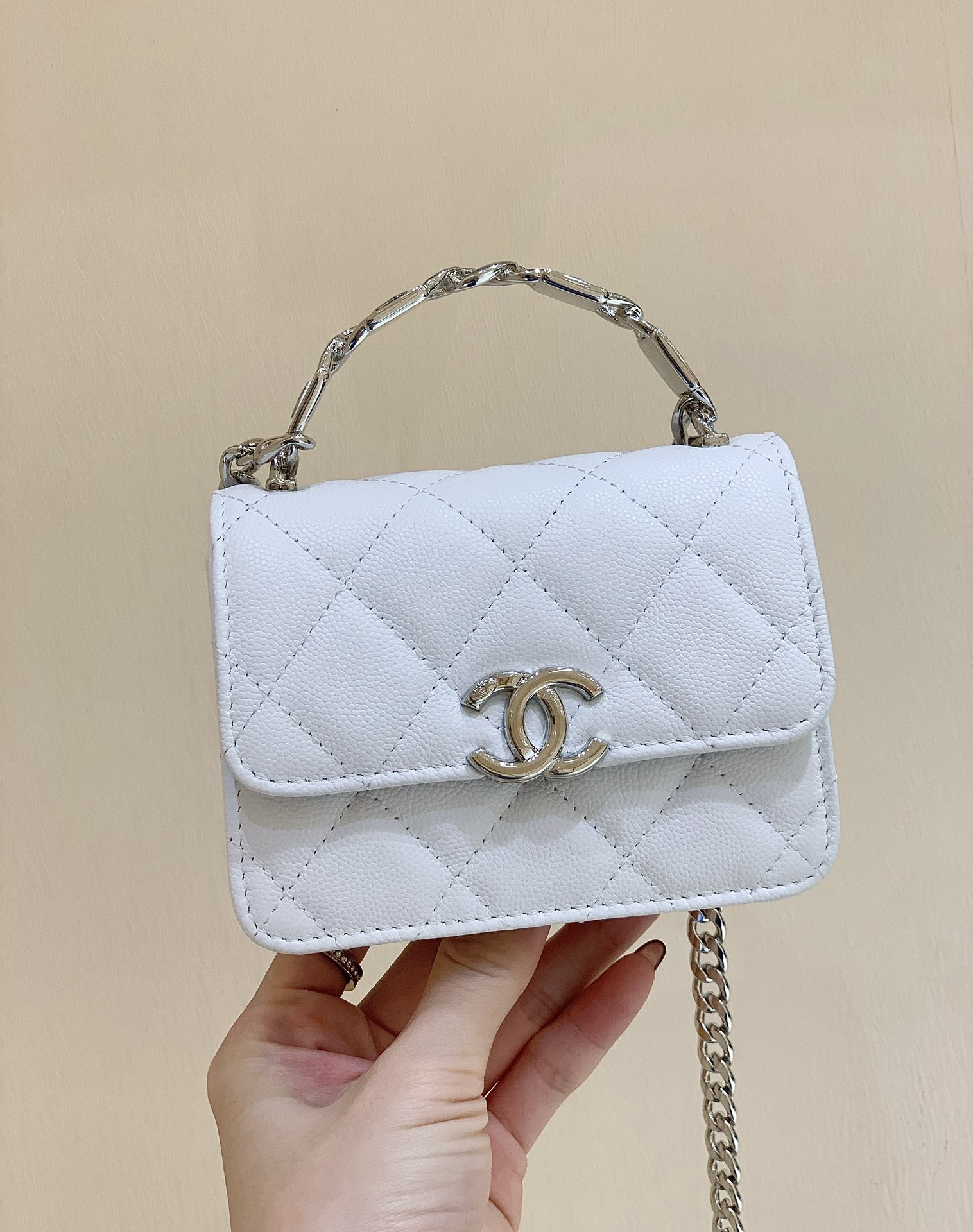 샤넬 미니 화이트 그레인드 카프스킨 코코 탑 핸들
