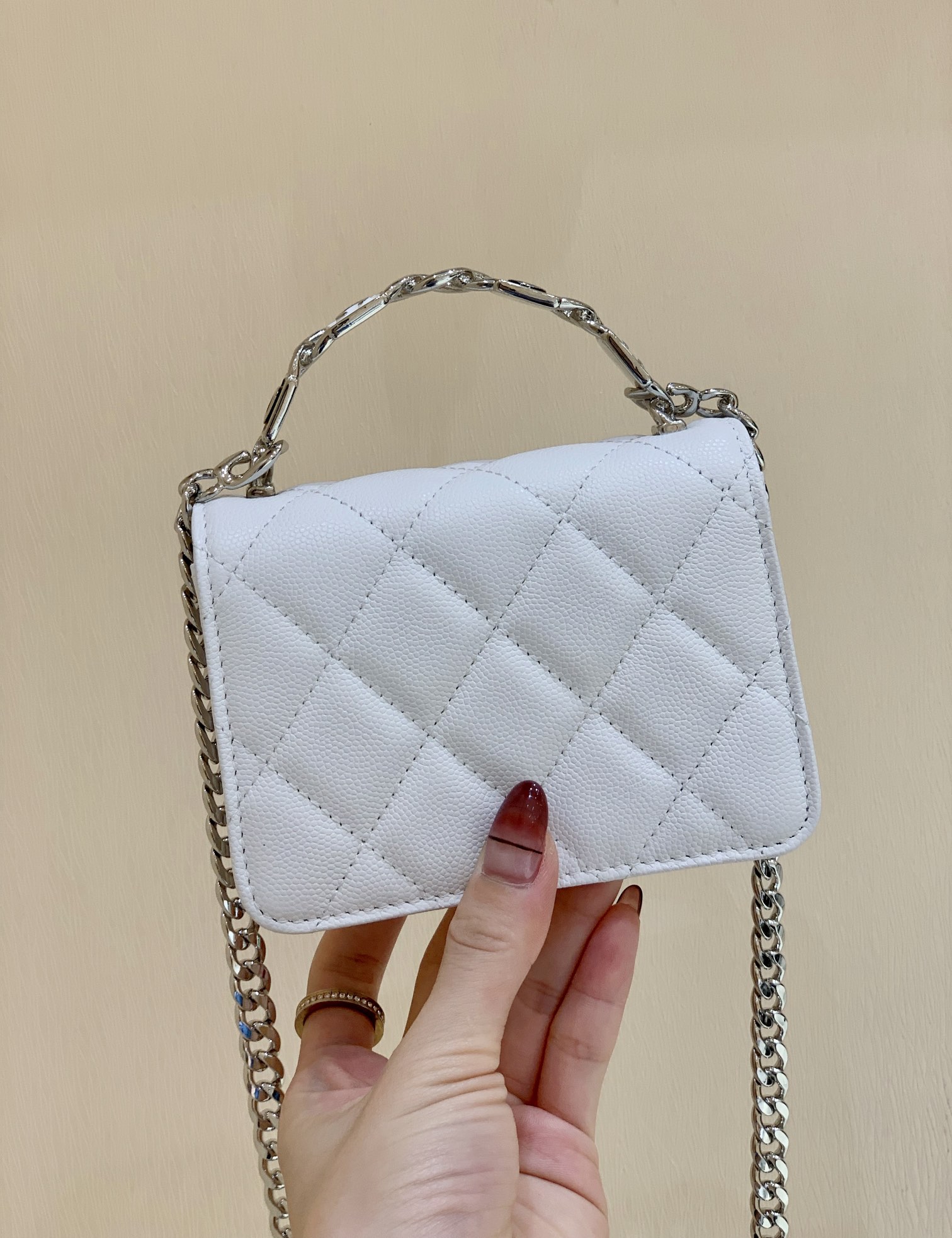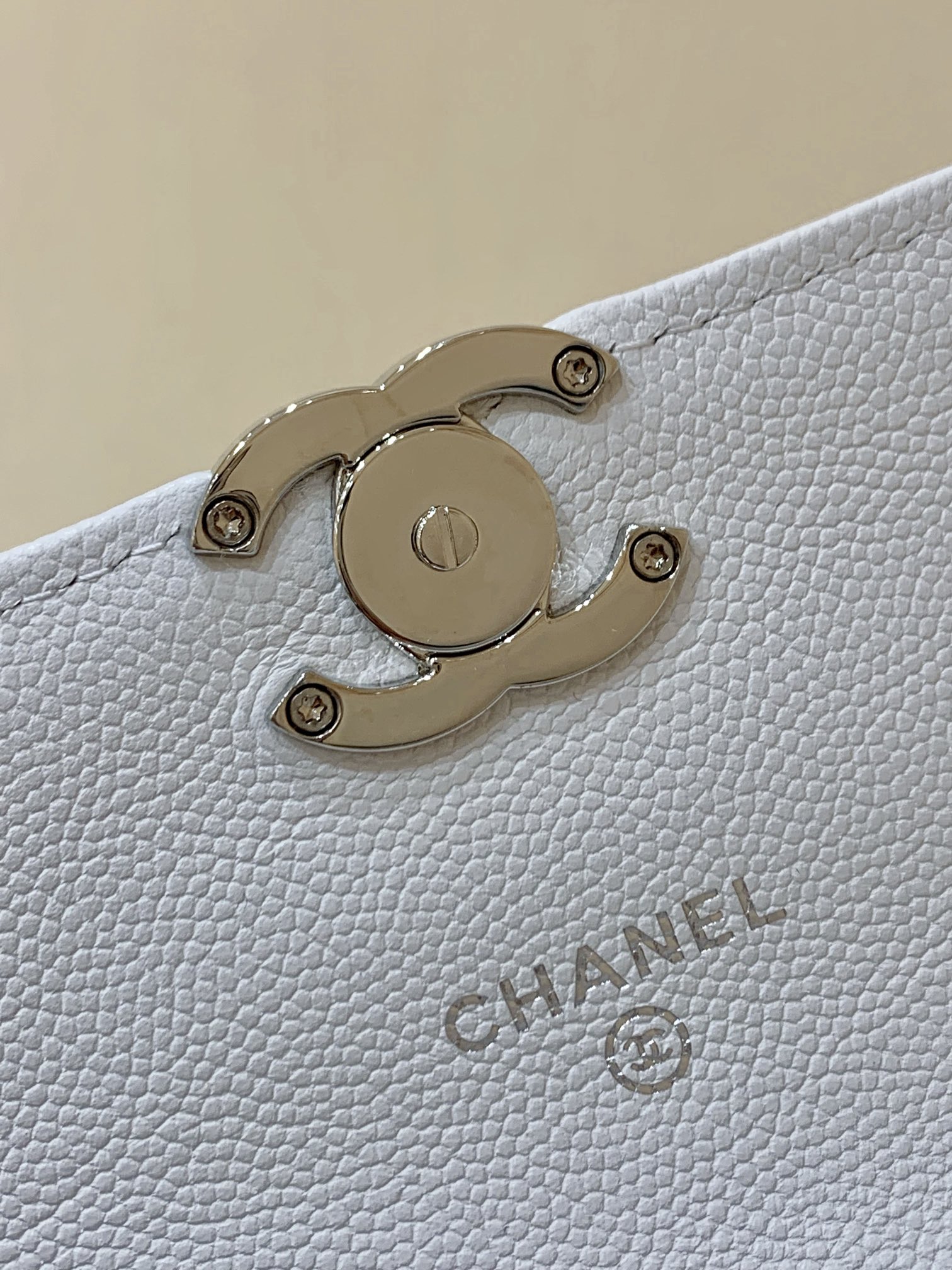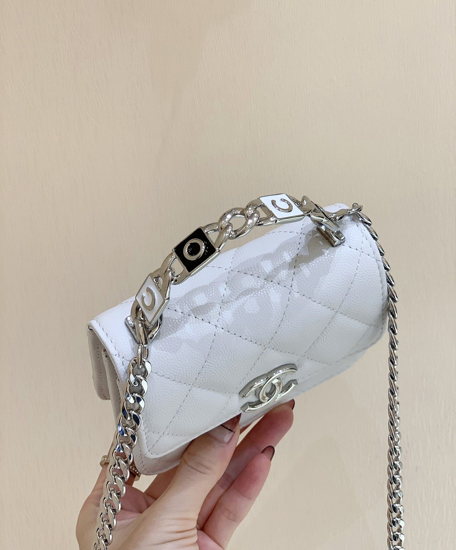 샤넬 미니 화이트 그레인드 카프스킨 코코 탑 핸들