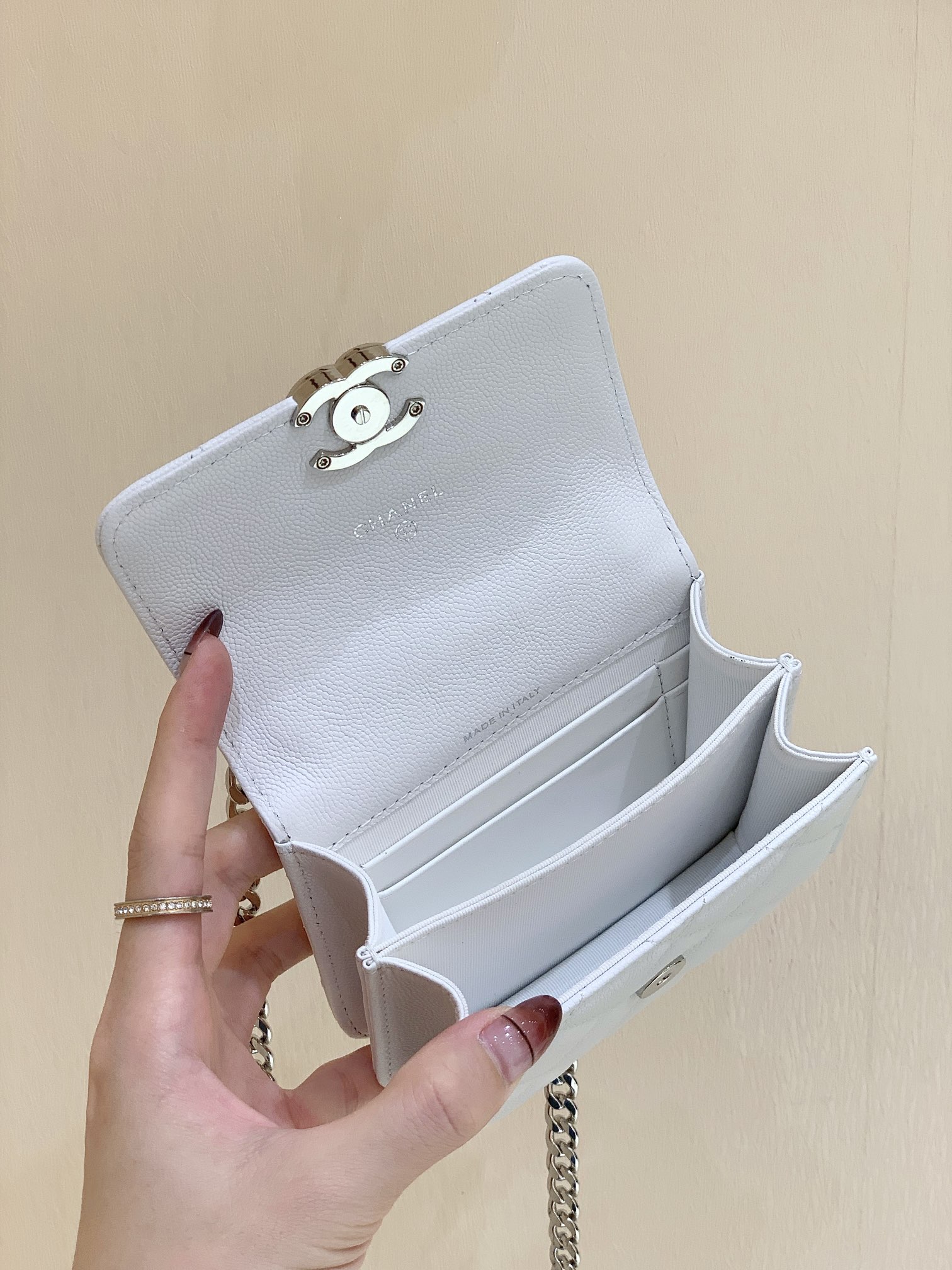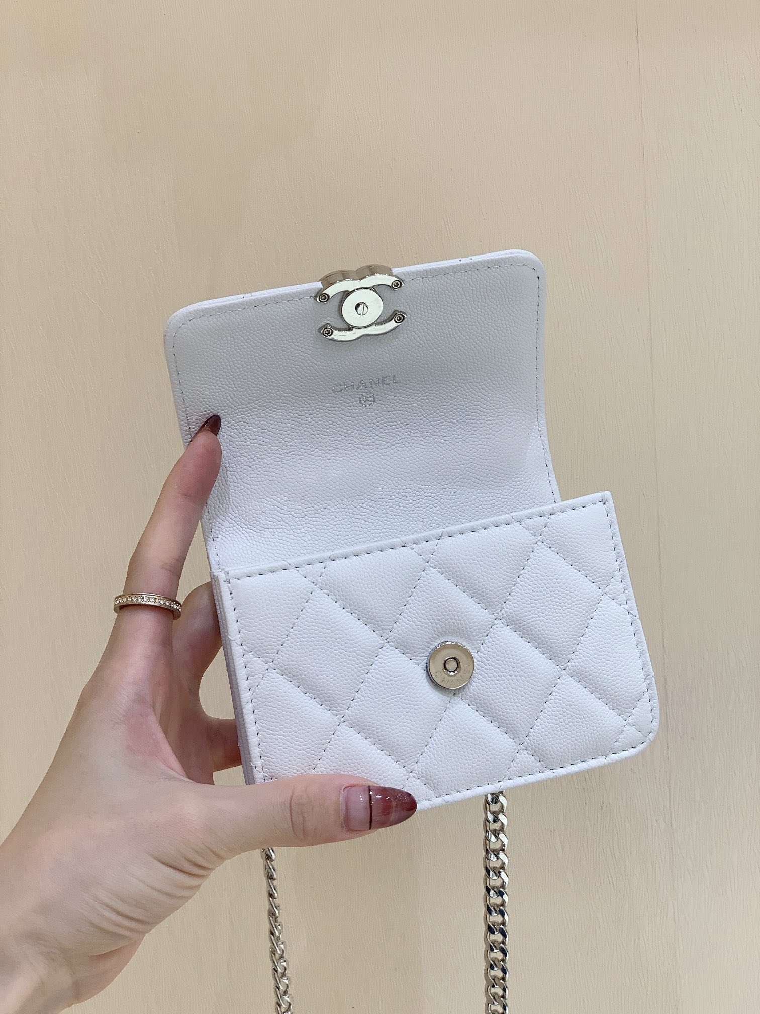 샤넬 31 미니 페이던트 카프스킨 골드 화이트