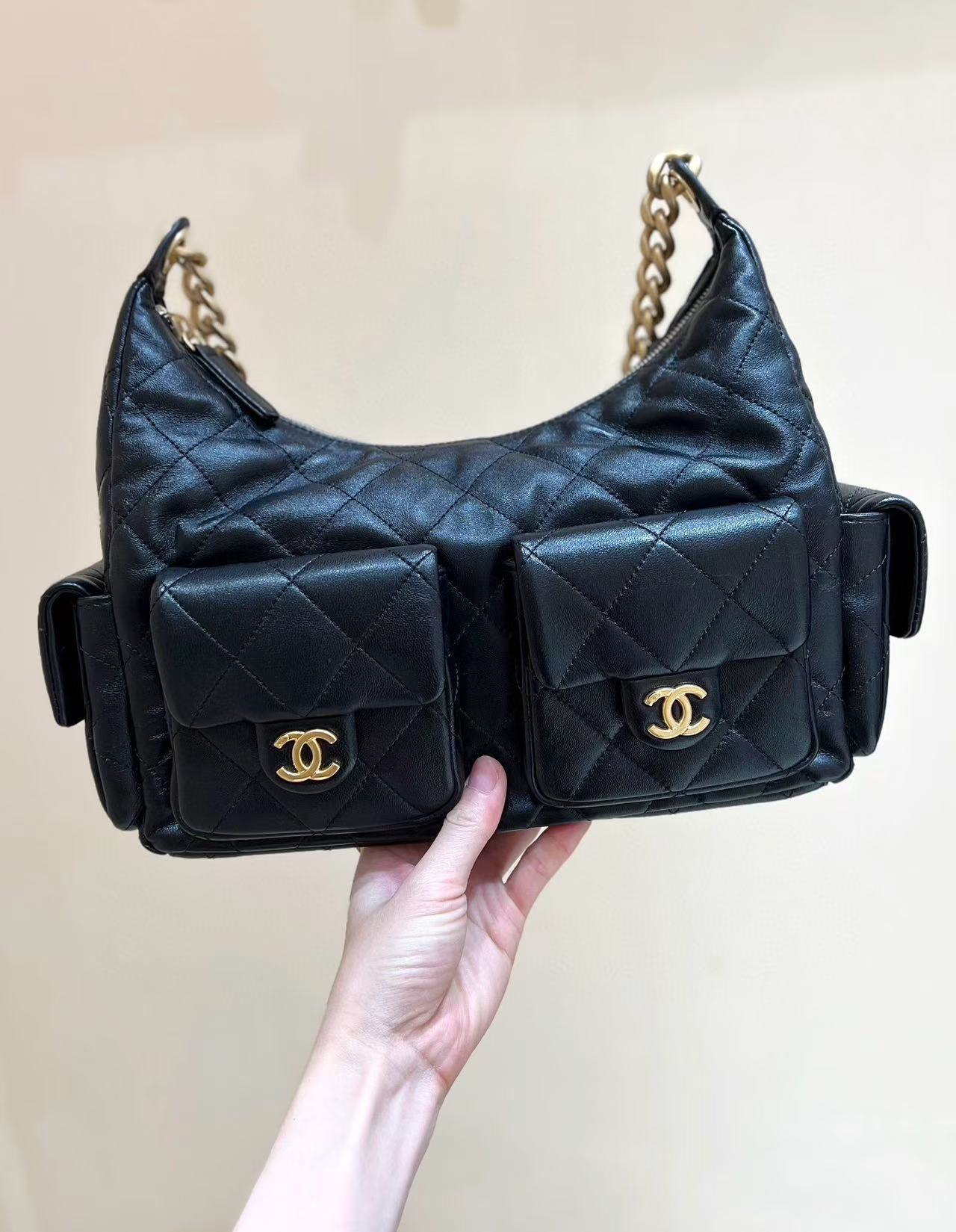 샤넬 24/25 크루즈 쇼 램스킨 맥시 호보백 블랙