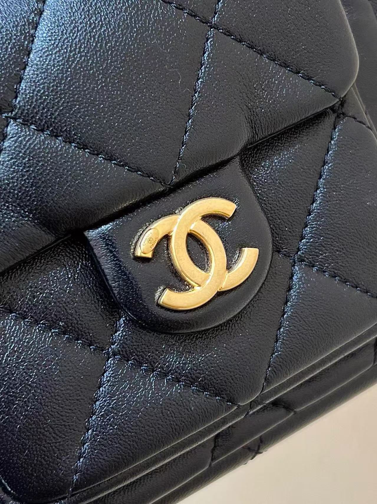 샤넬 펄리 램스킨 골드 메탈 블랙 체인 지갑 25SS