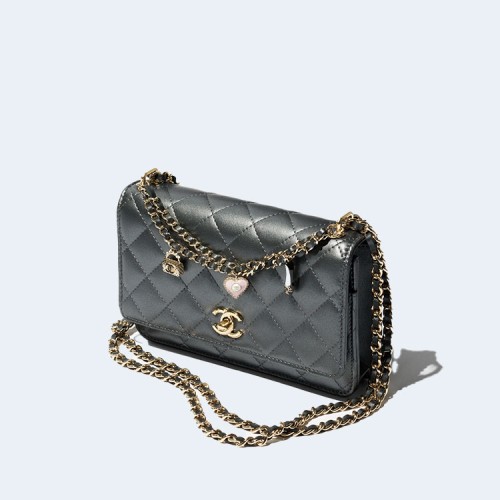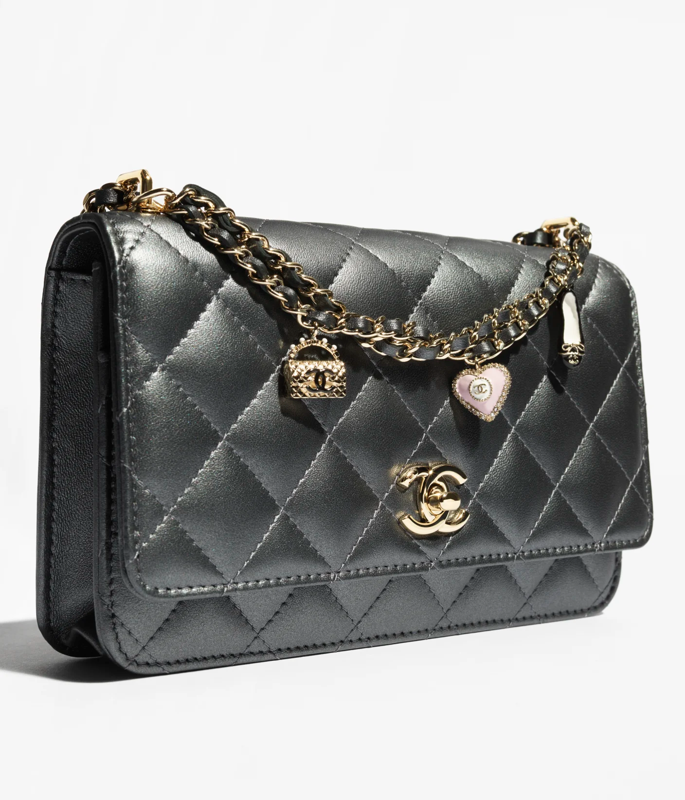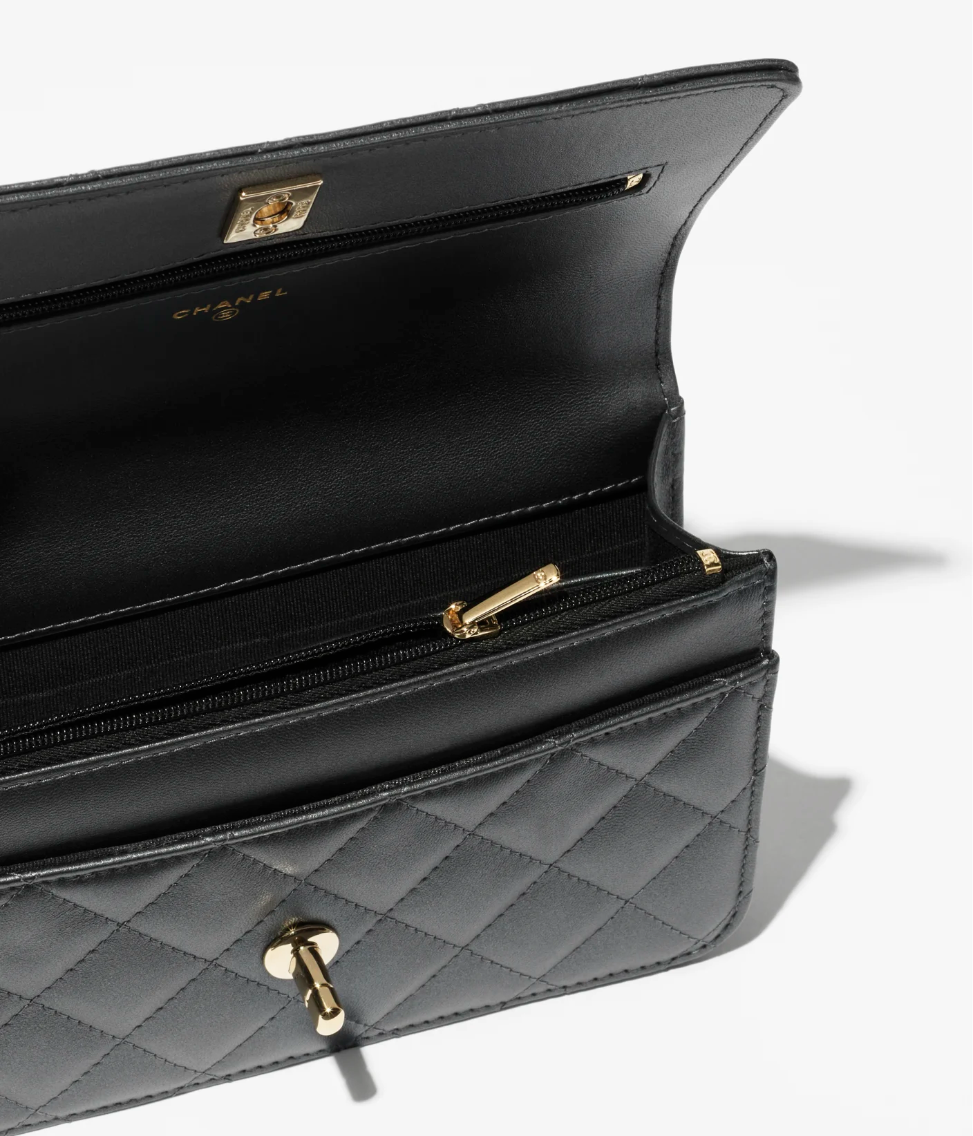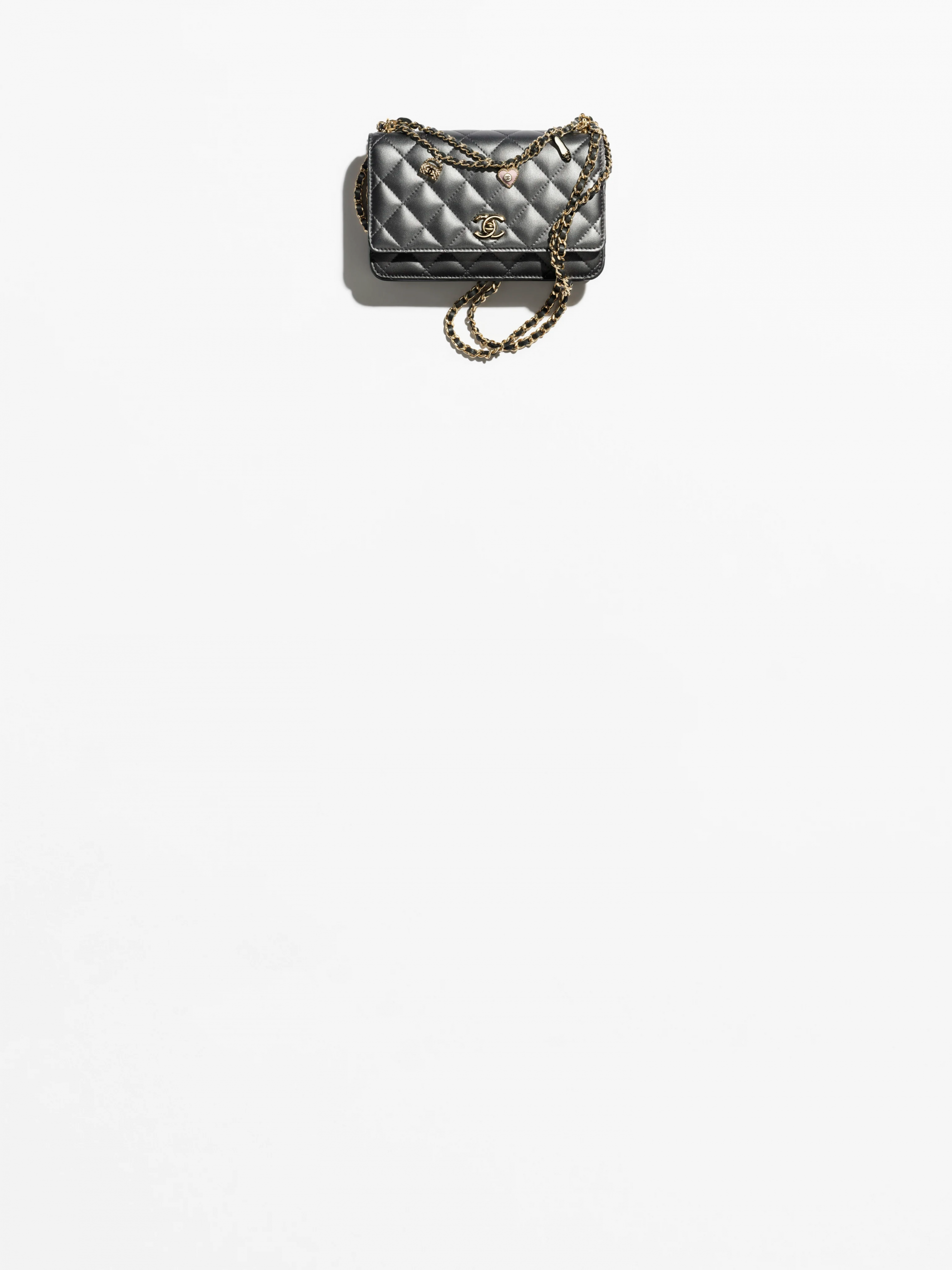 샤넬 펄리 램스킨 골드 메탈 블랙 체인 지갑 25SS