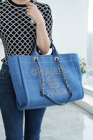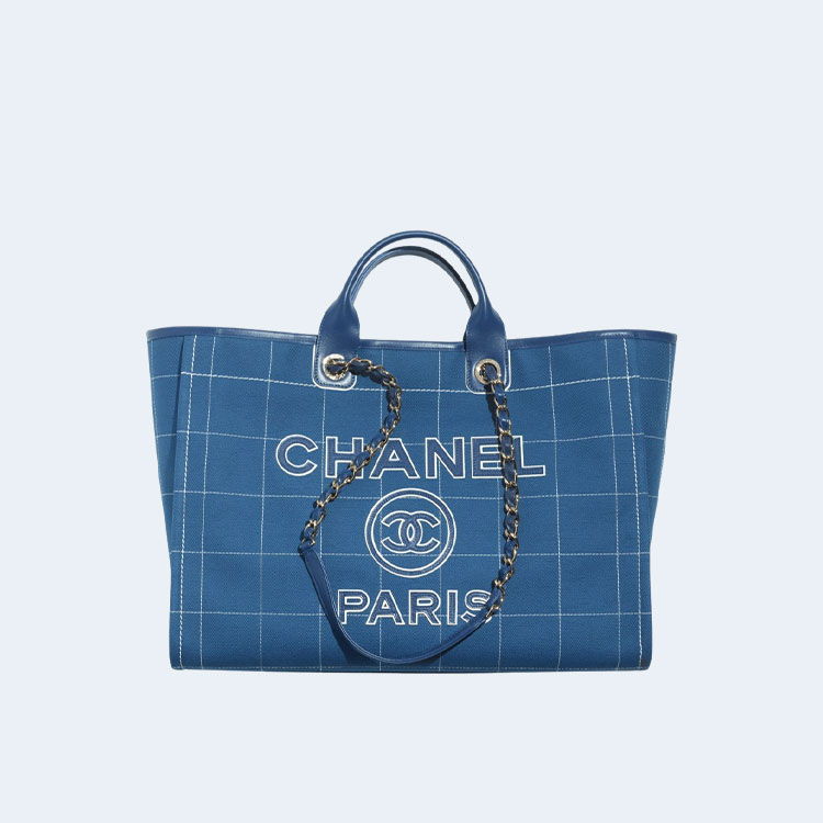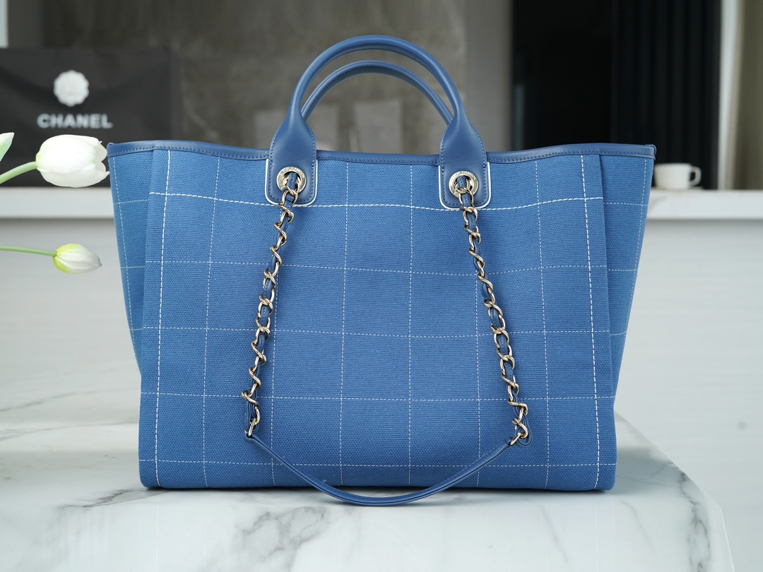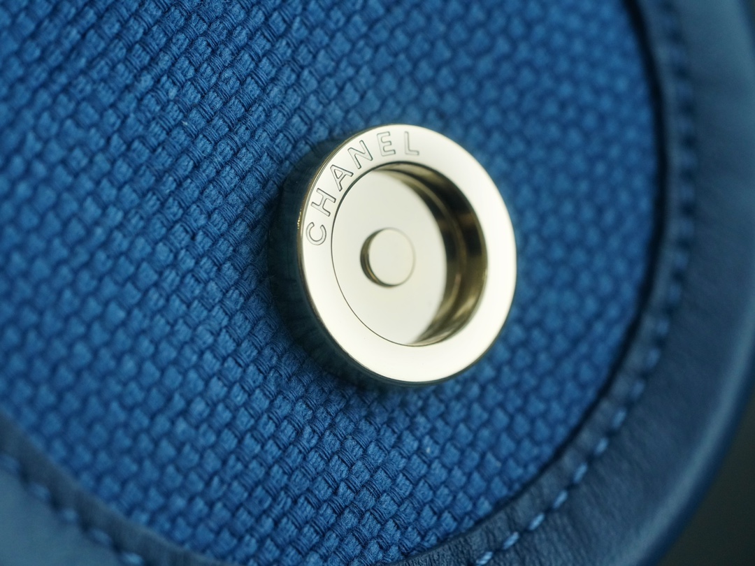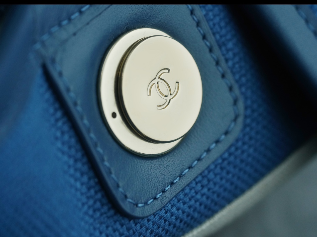 샤넬 맥시 쇼퍼 코튼 카프스킨 골드메탈 블루