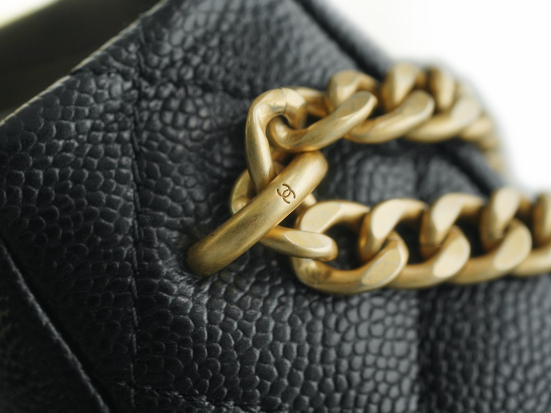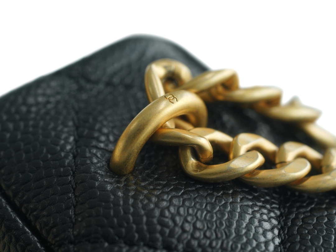 샤넬 클래식 캐비어 플랩 지갑 골드
