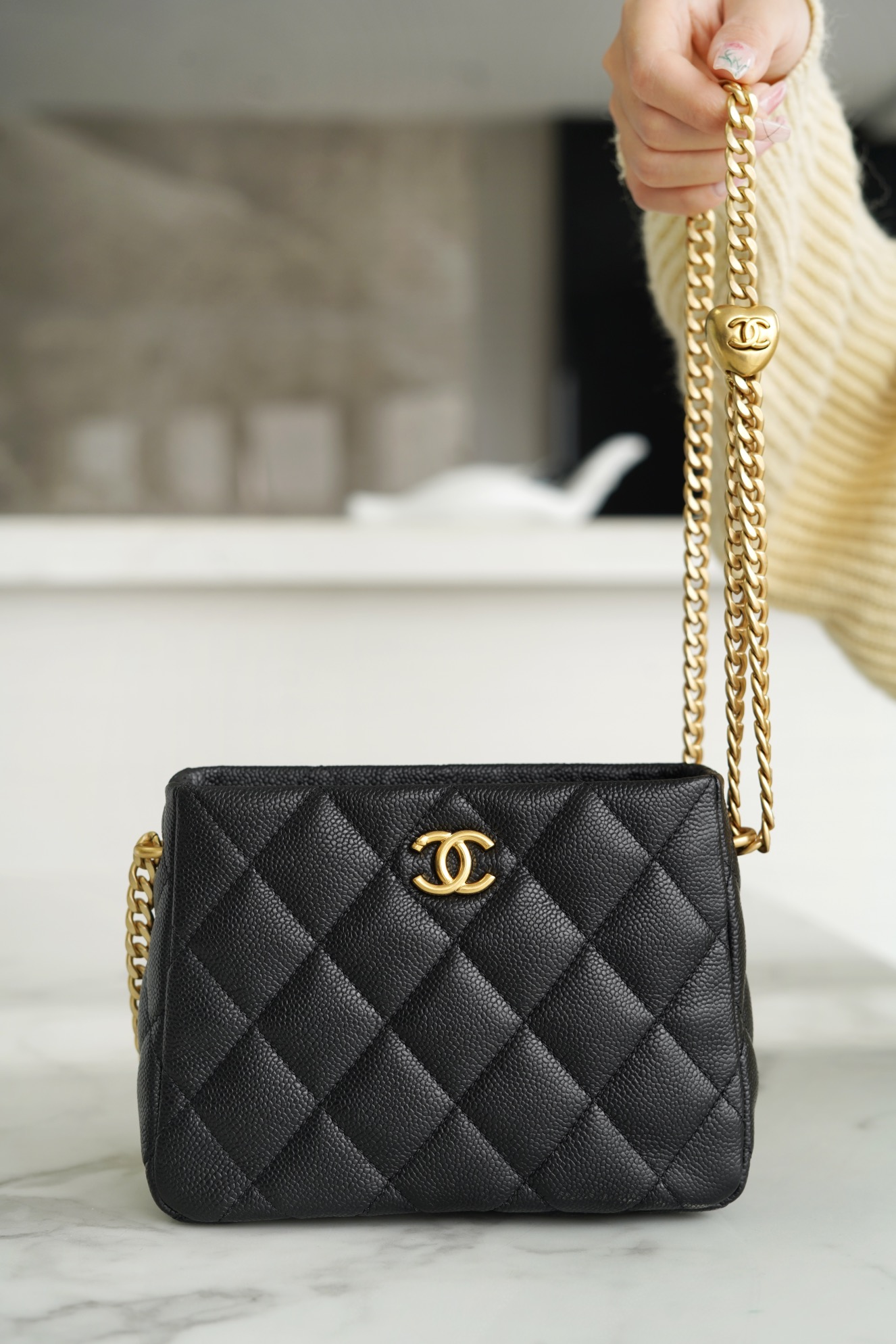 샤넬 하트볼 호보백 스몰 캐비어 블랙
