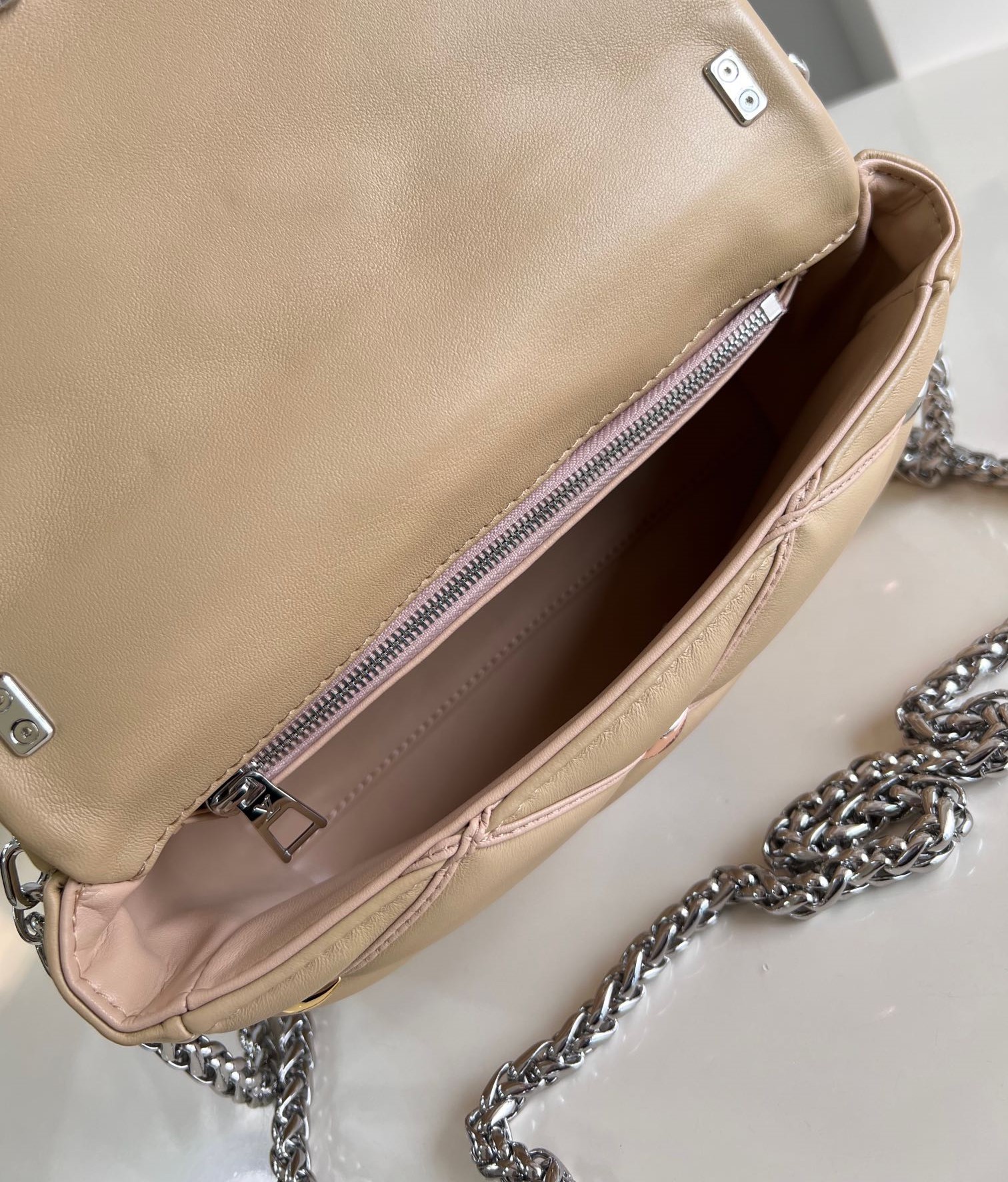 샤넬 19 지퍼 코인 지갑 베이지