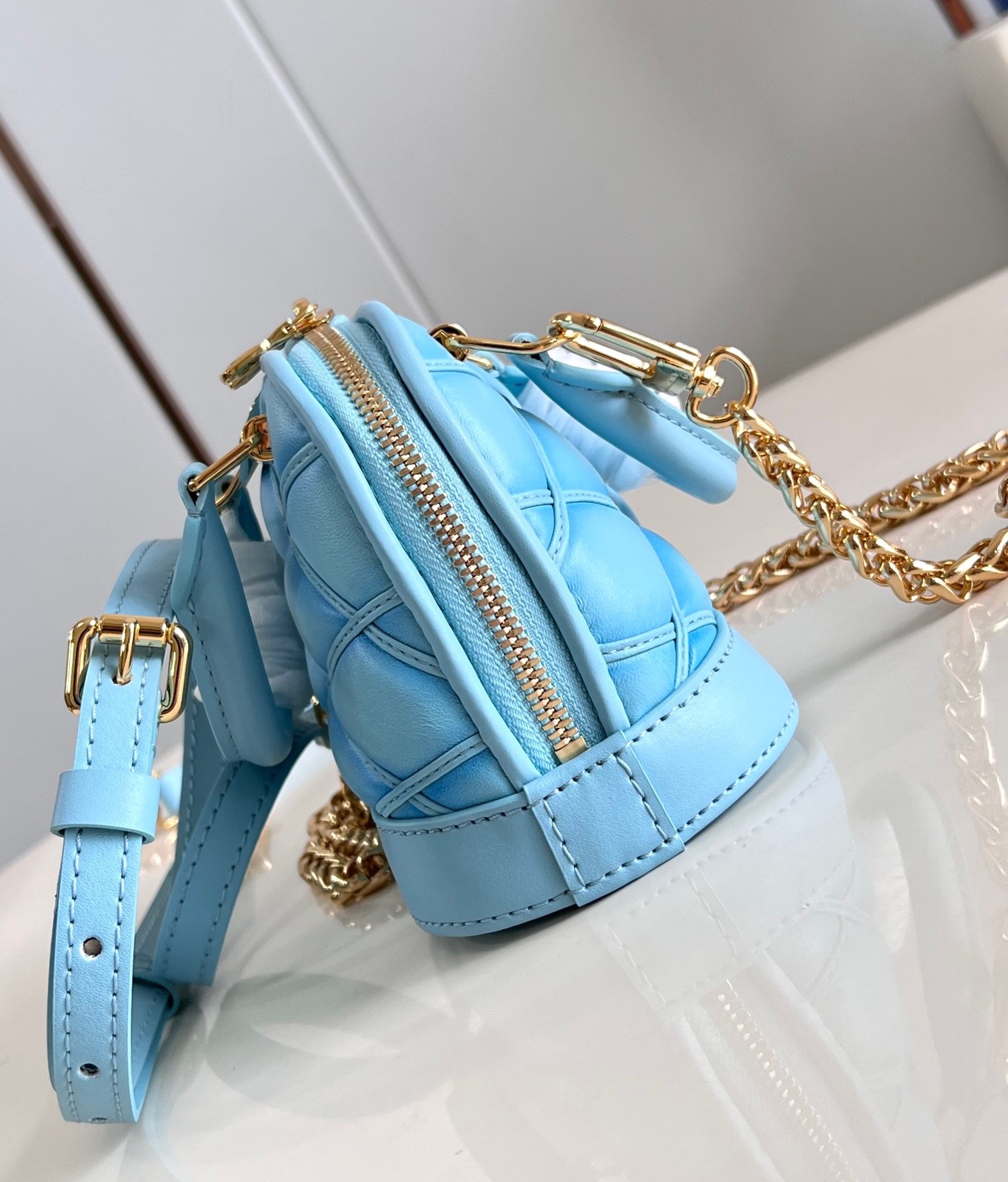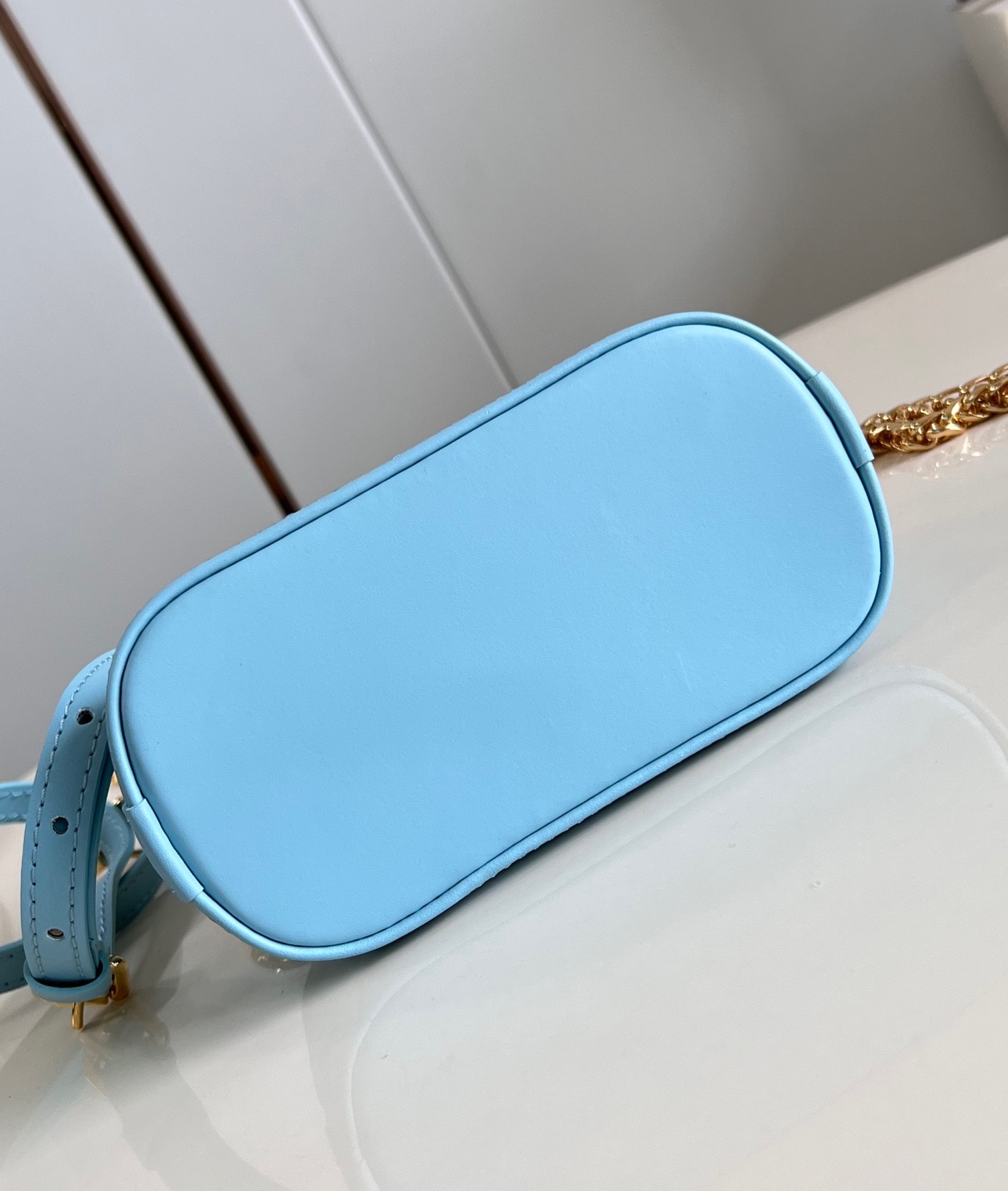 샤넬 19 플랩 카드 홀더 스카이 블루