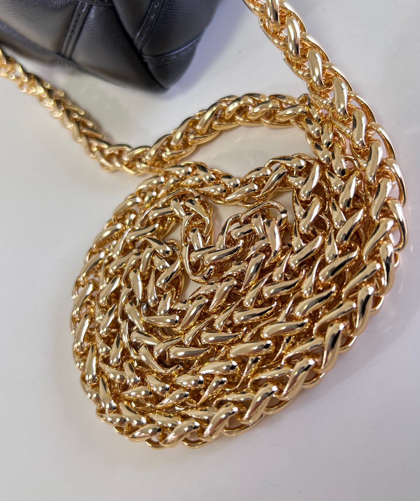 샤넬 펄리 램스킨 골드 메탈 블랙 체인 지갑 25SS
