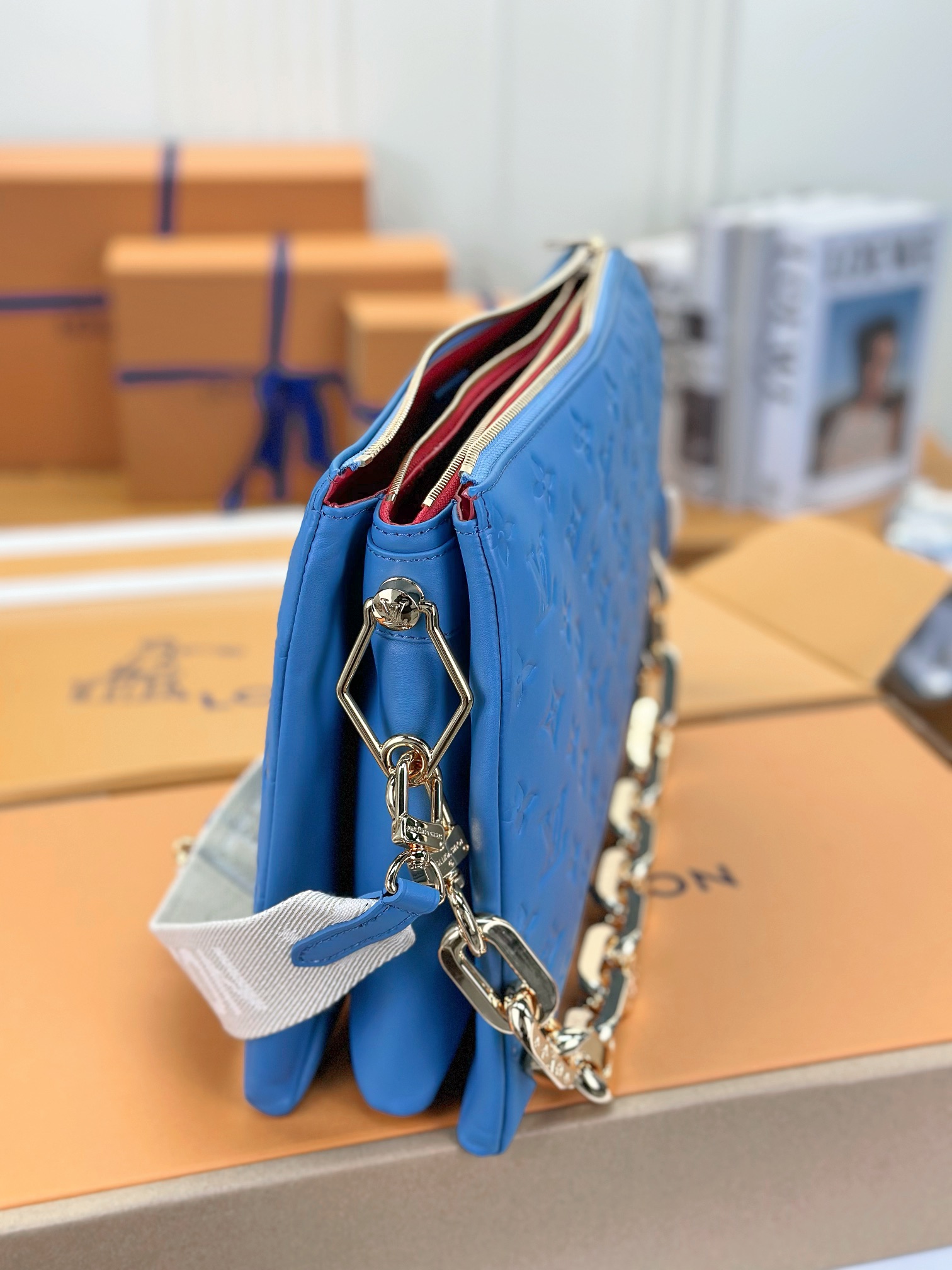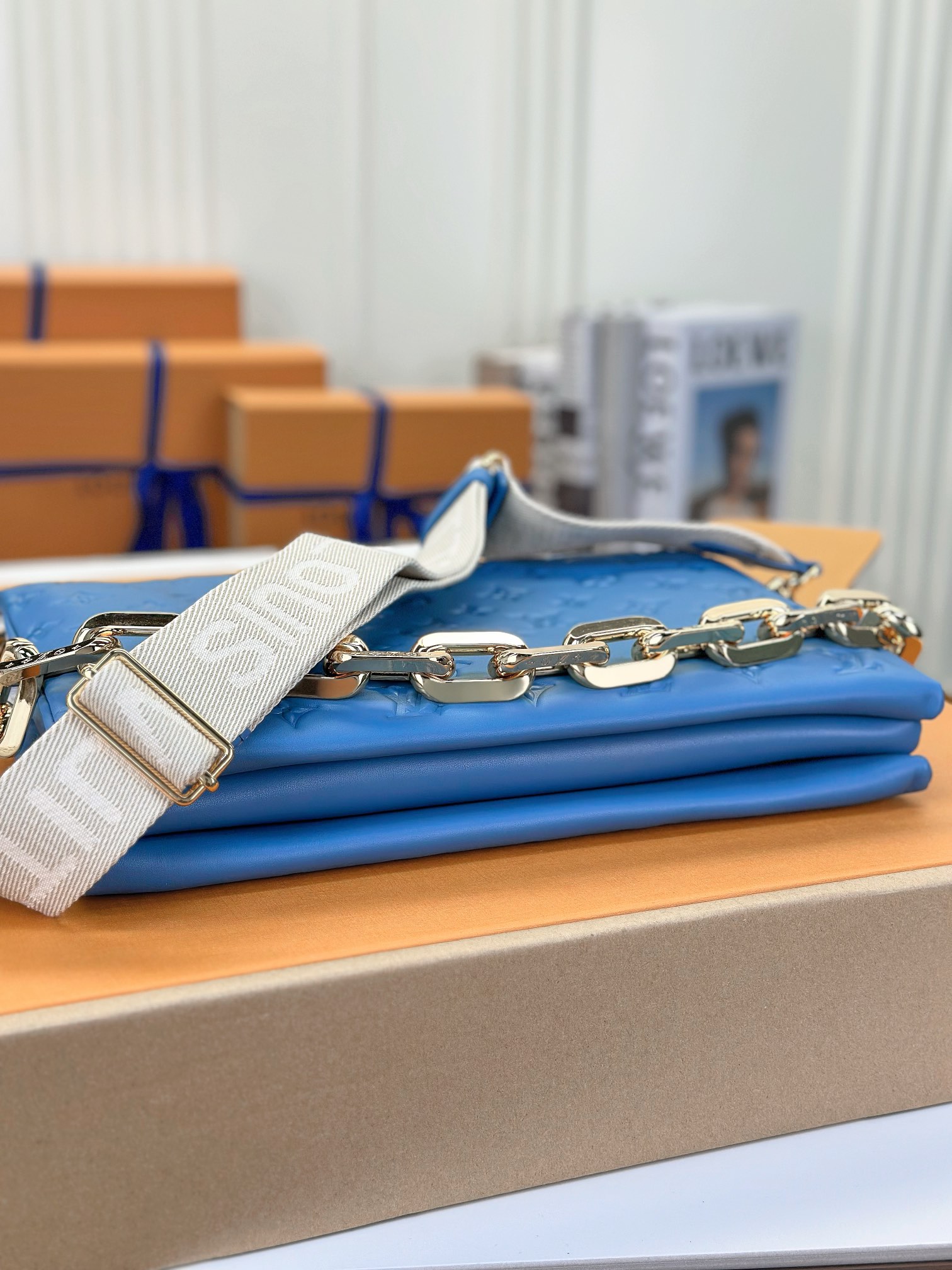 샤넬 19 플랩 카드 홀더 스카이 블루