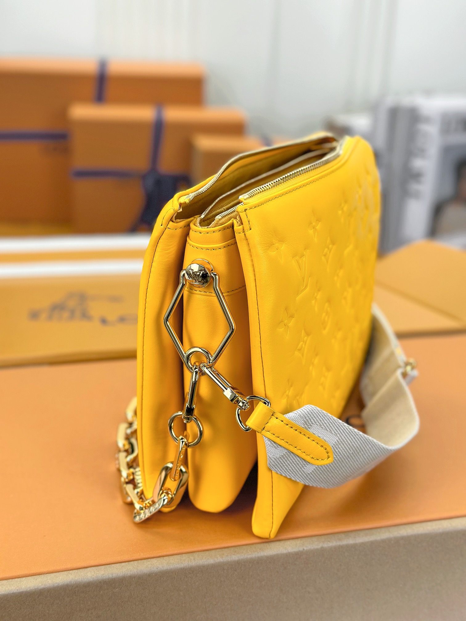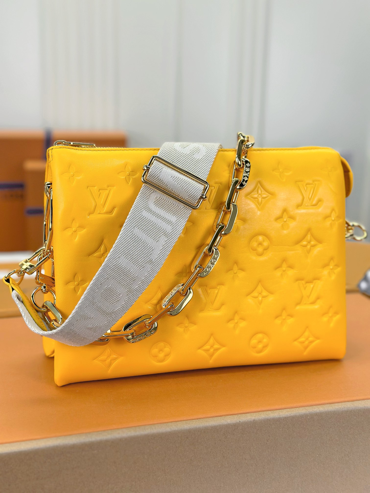 루이비통 쿠상 PM 백 실버 체인 스카이블루