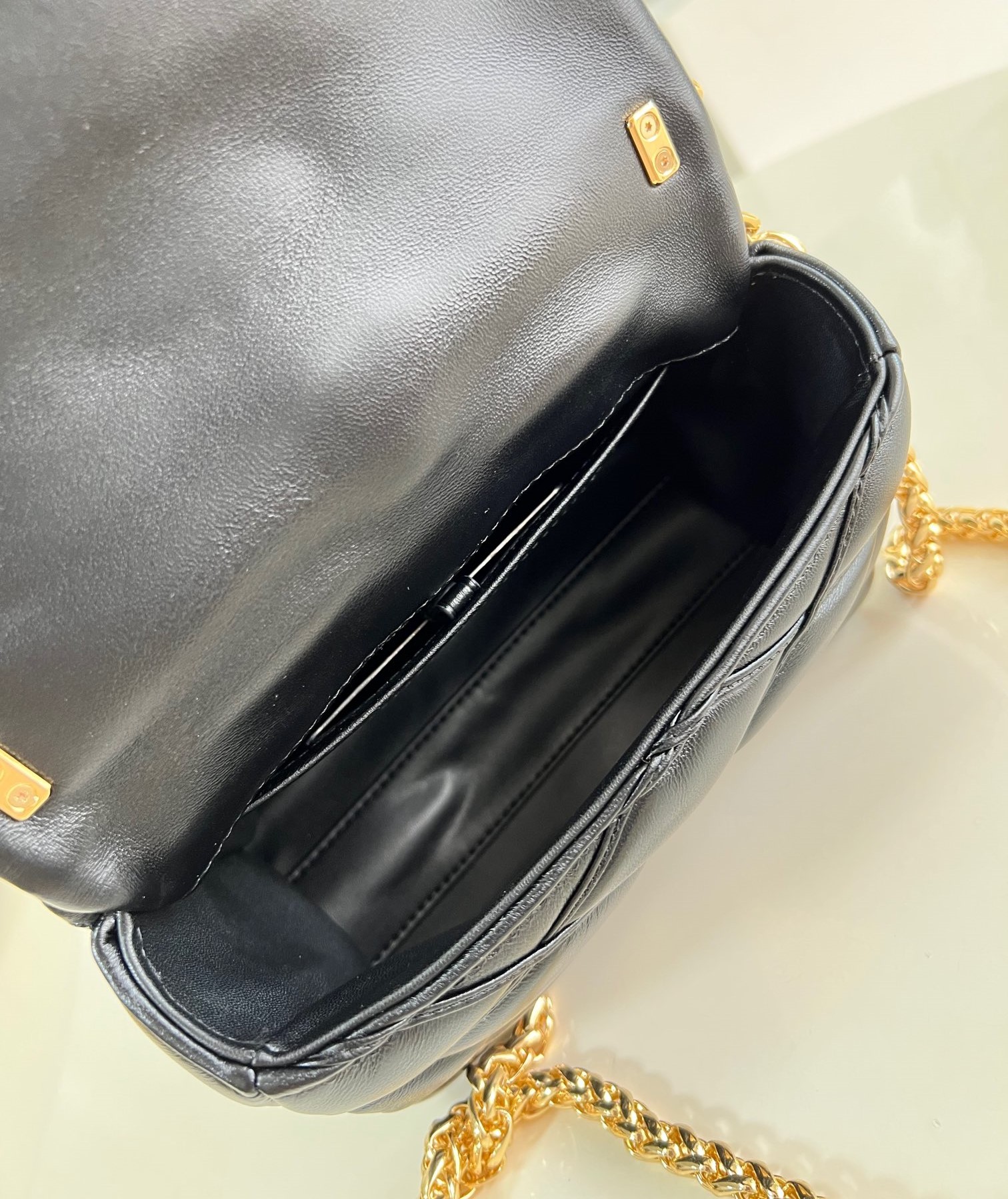 샤넬 펄리 램스킨 골드 메탈 블랙 체인 지갑 25SS