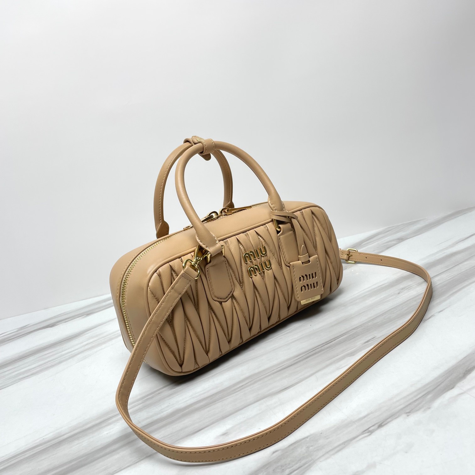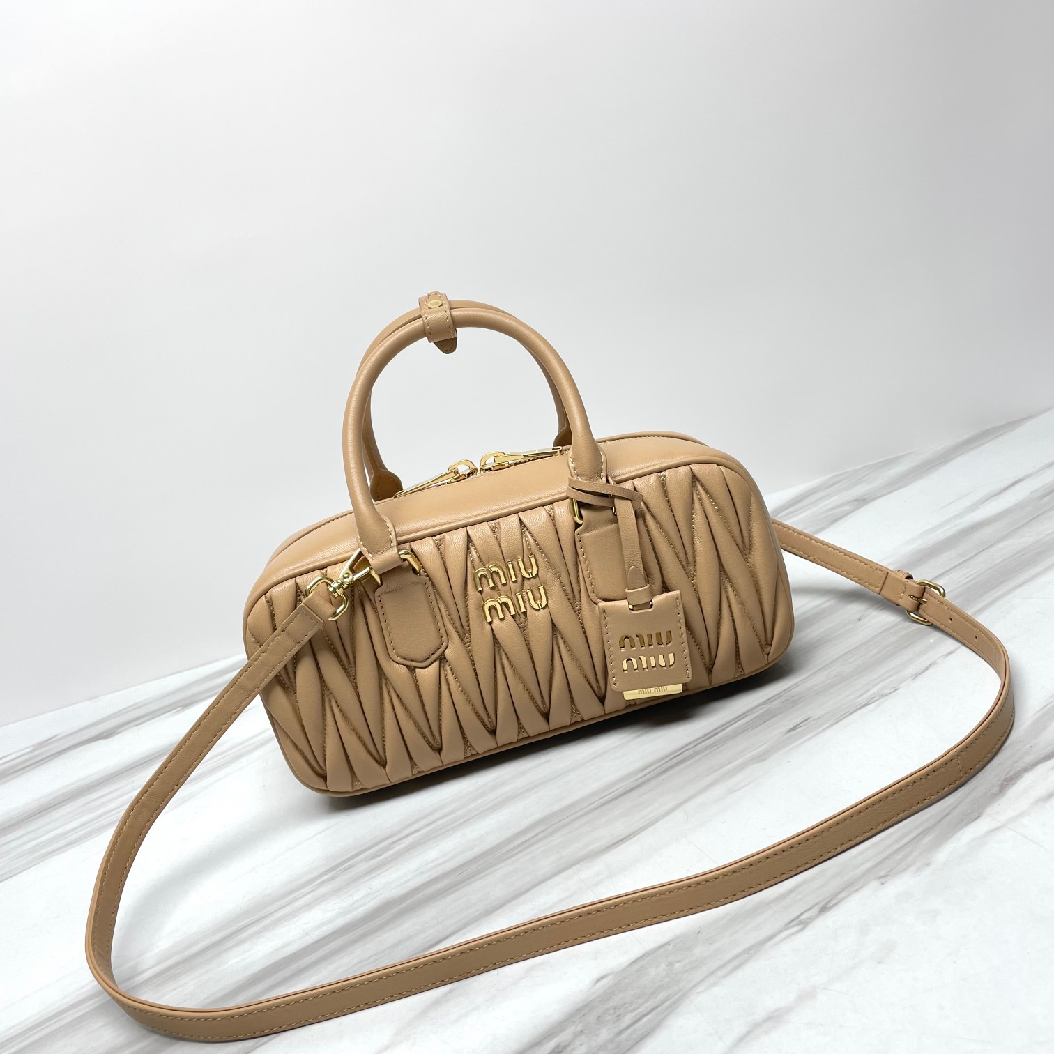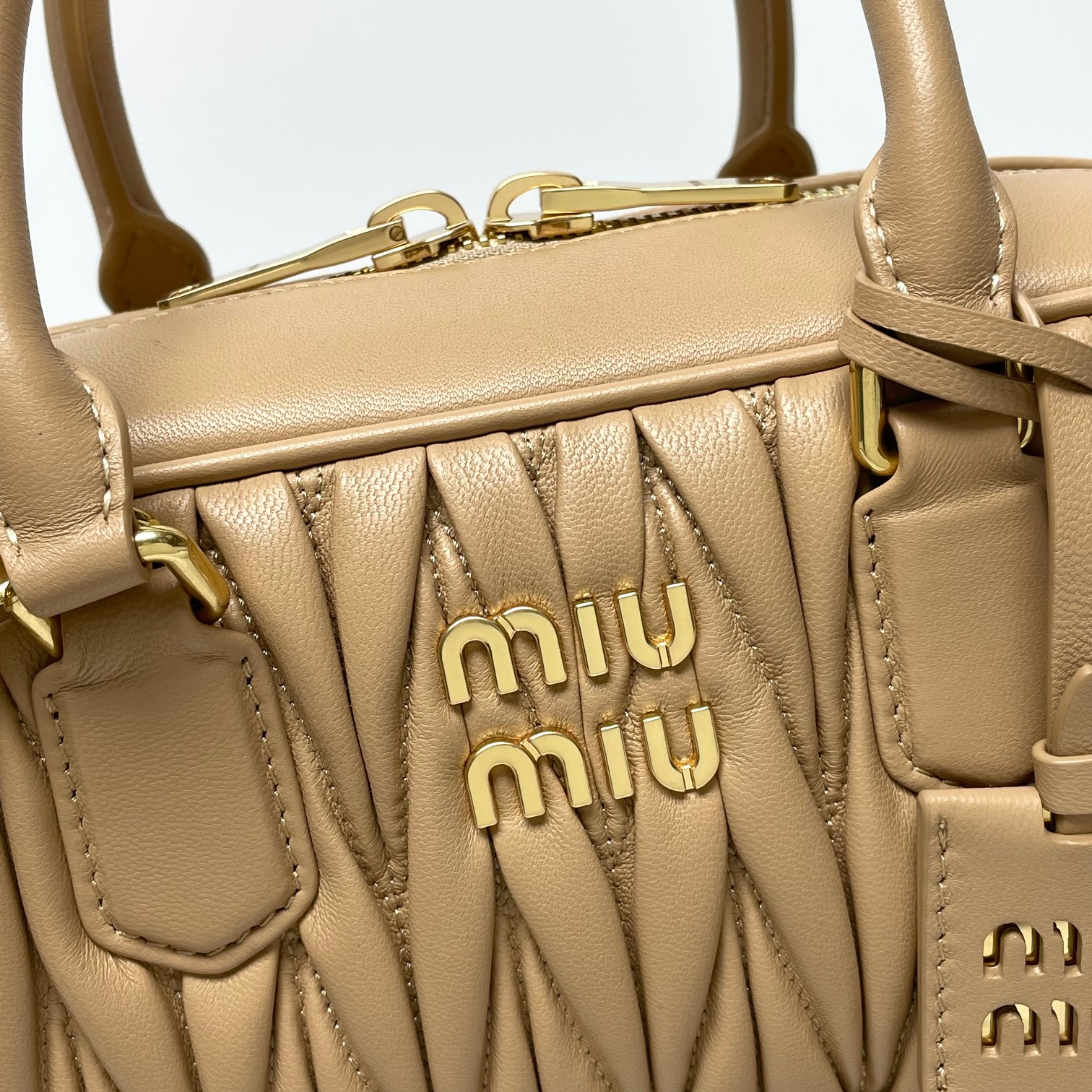 미우미우 미디엄 아르카디 마테라쎄 나파 가죽백 베이지