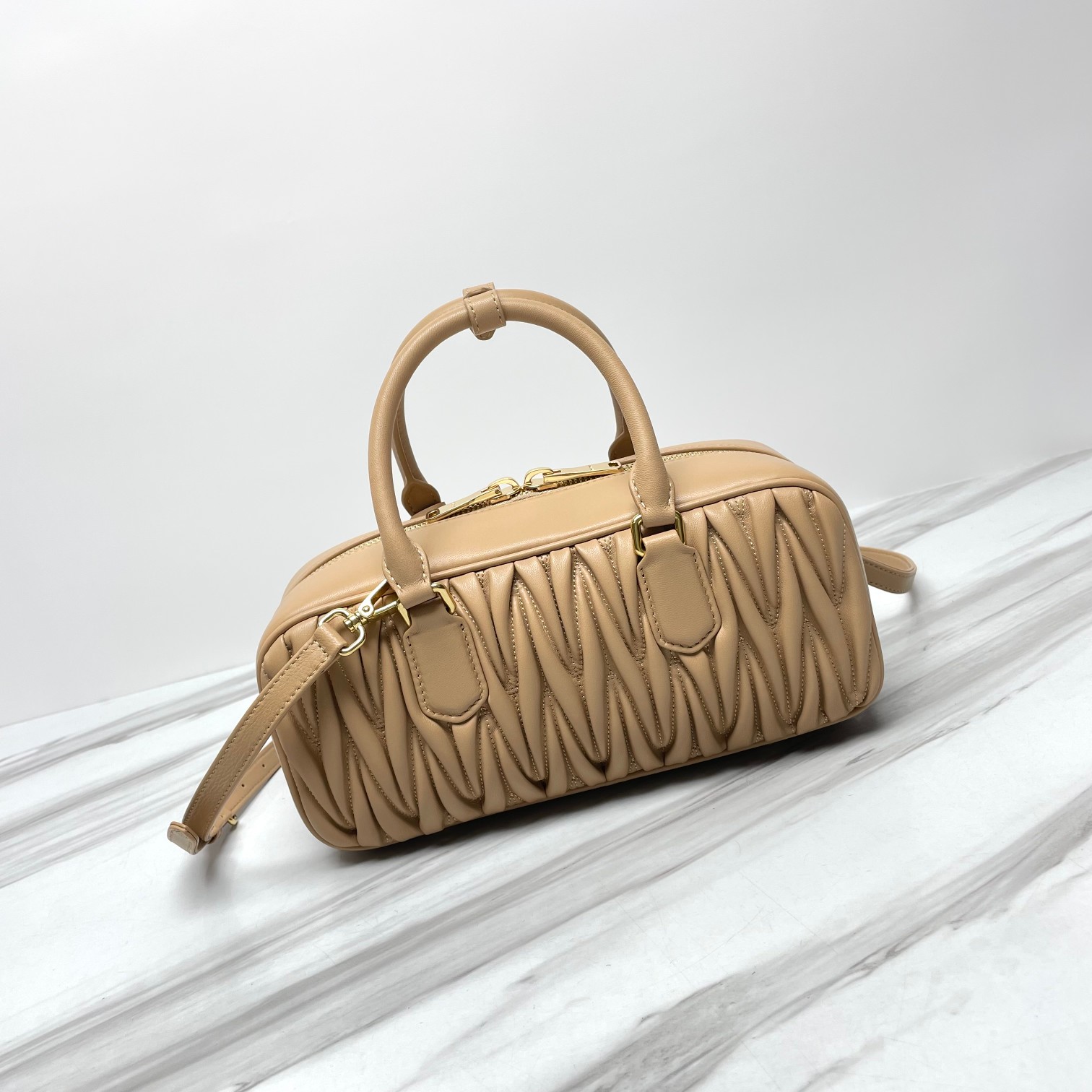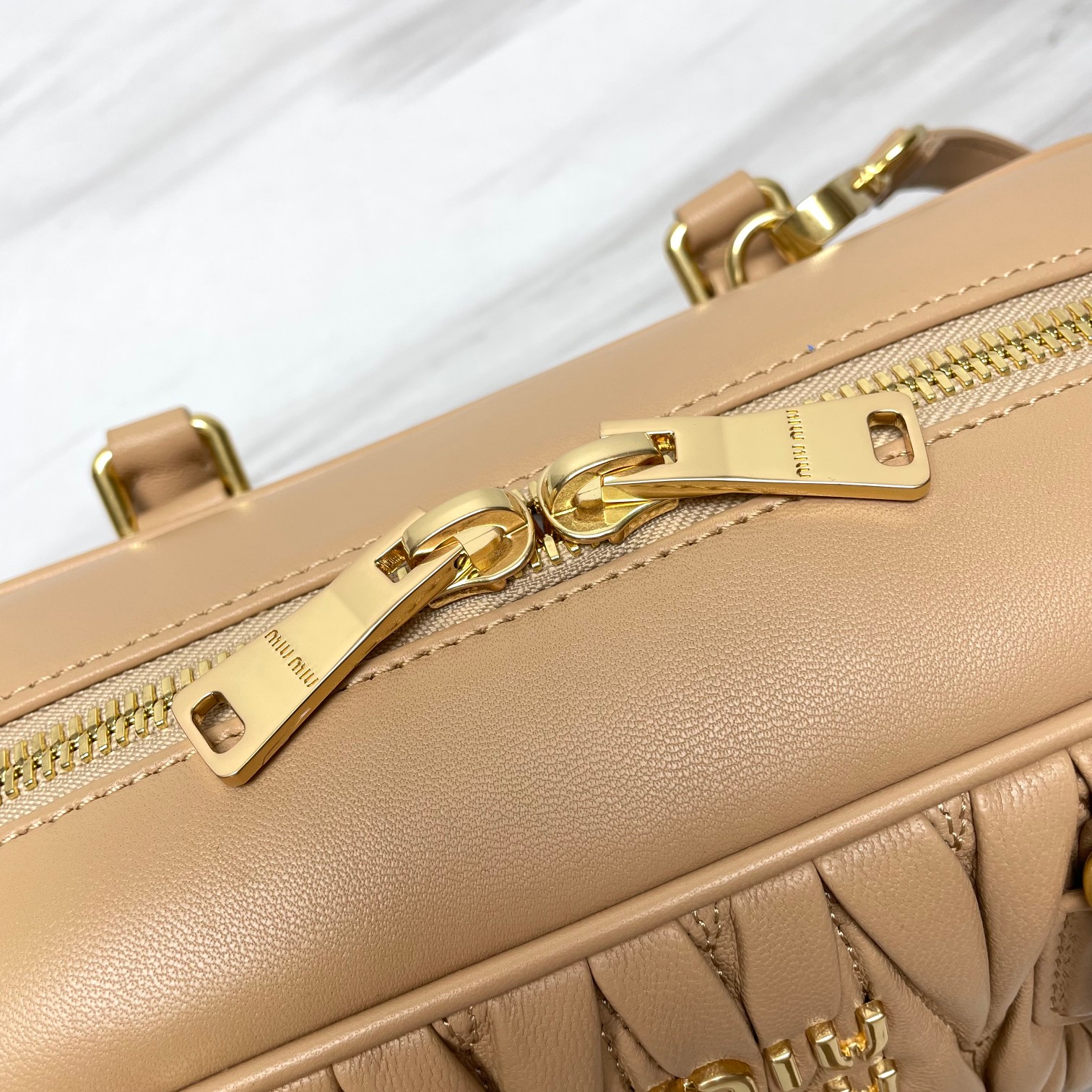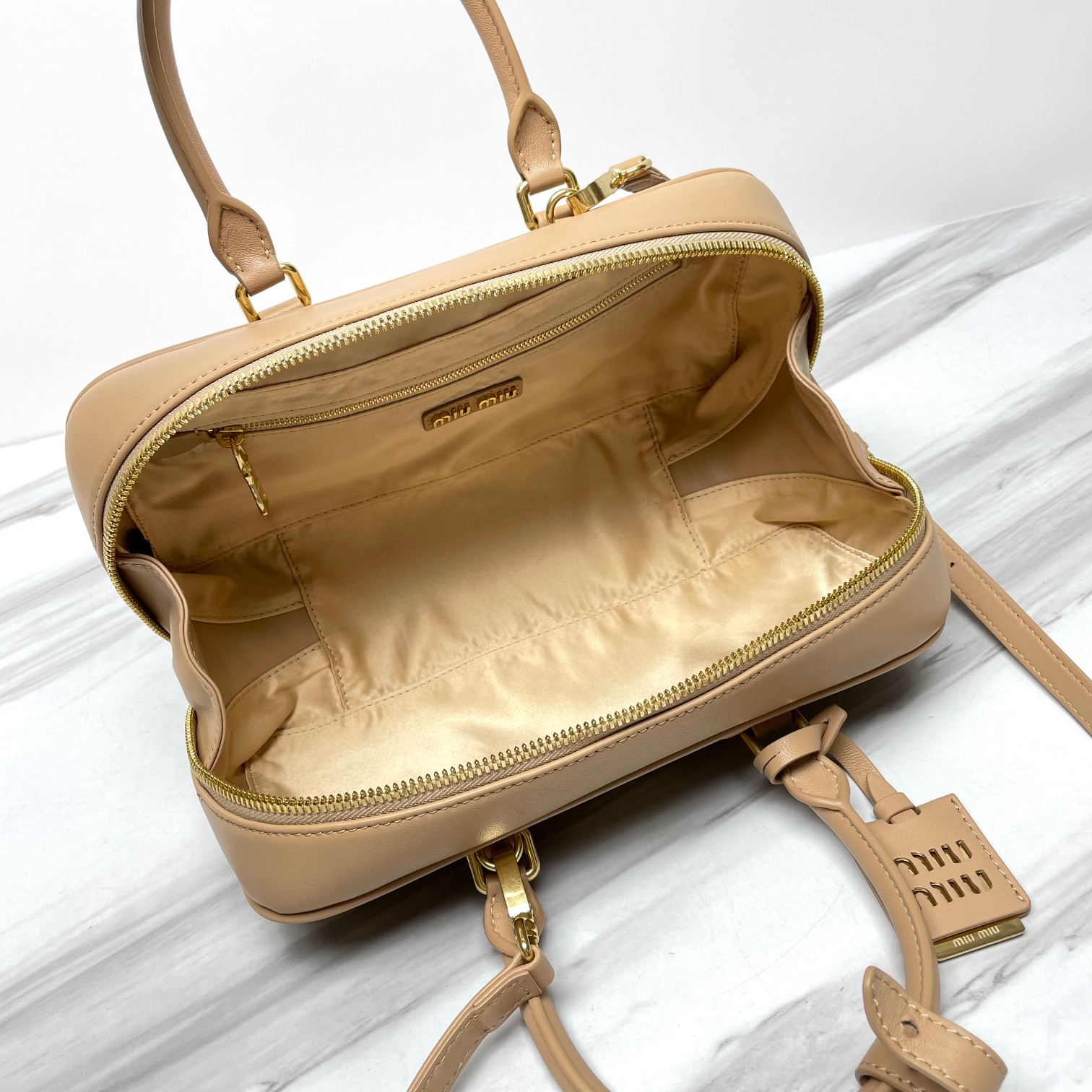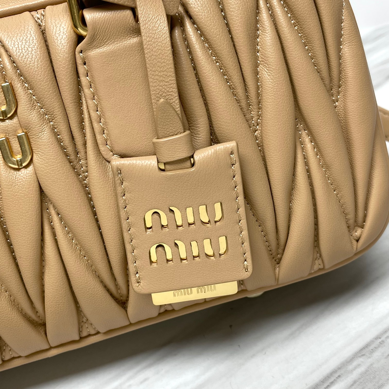 미우미우 미디엄 아르카디 마테라쎄 나파 가죽백 베이지