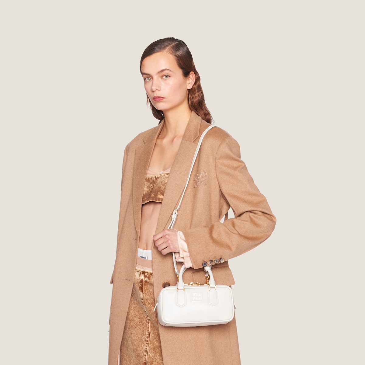 미우미우 스몰 아르카디 가죽백 화이트