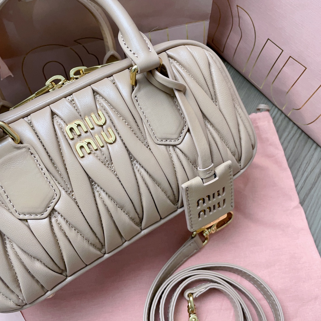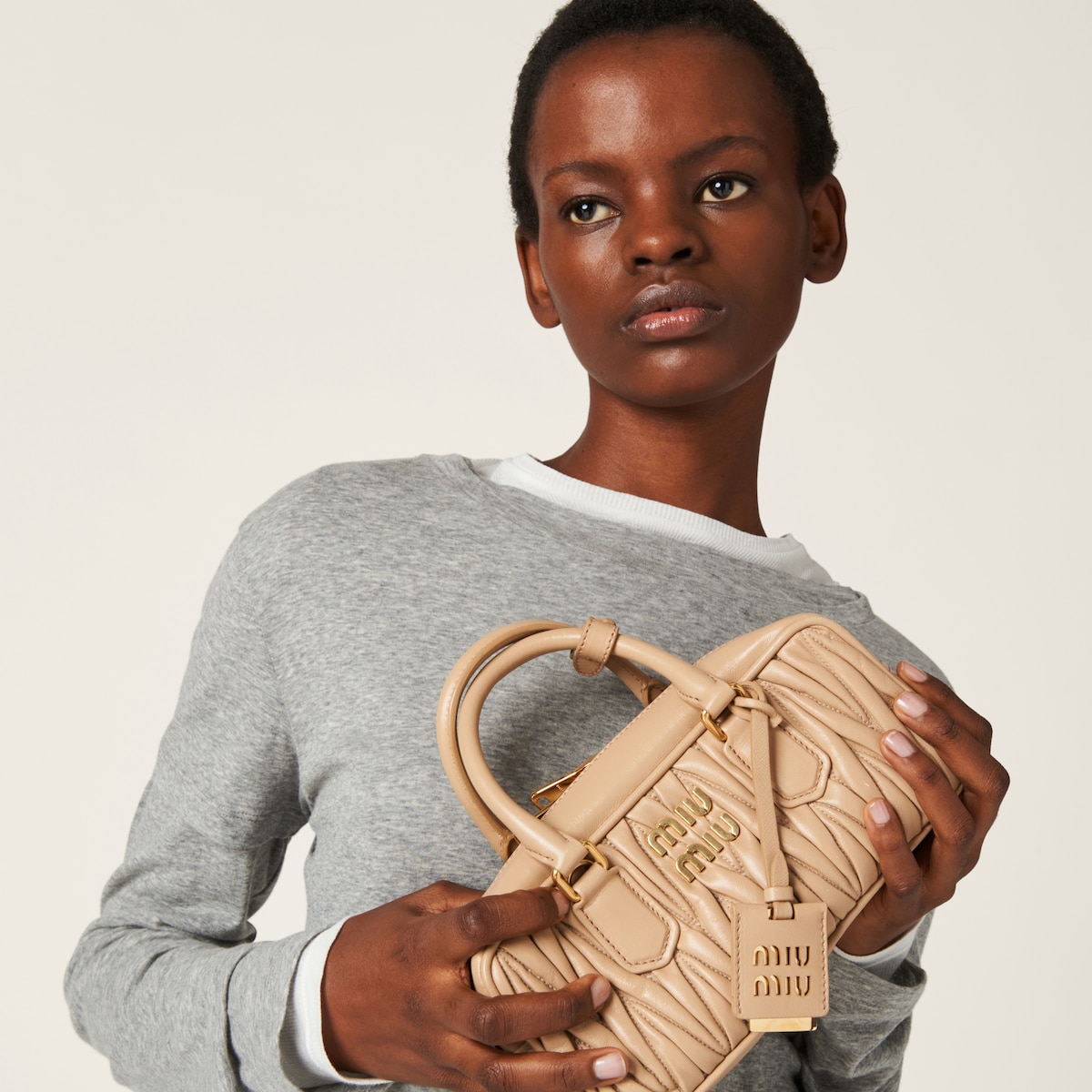 미우미우 스몰 아르카디 마테라쎄 나파 가죽백 베이지