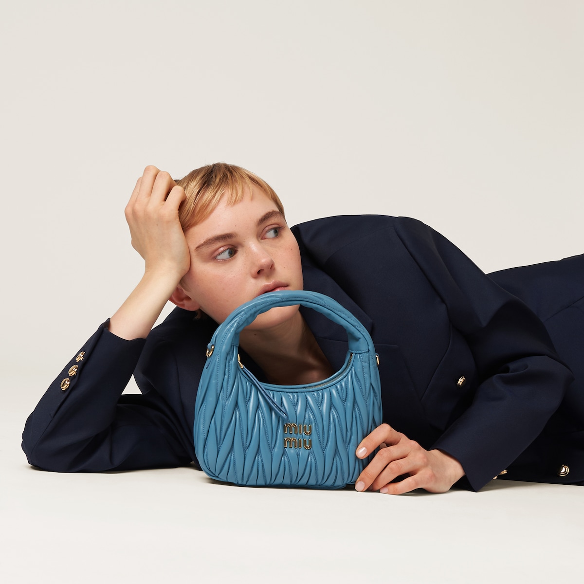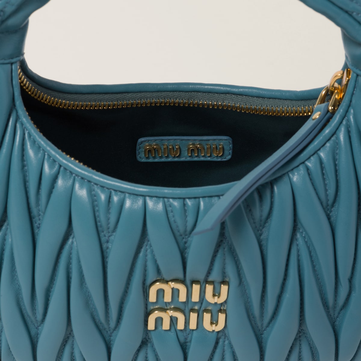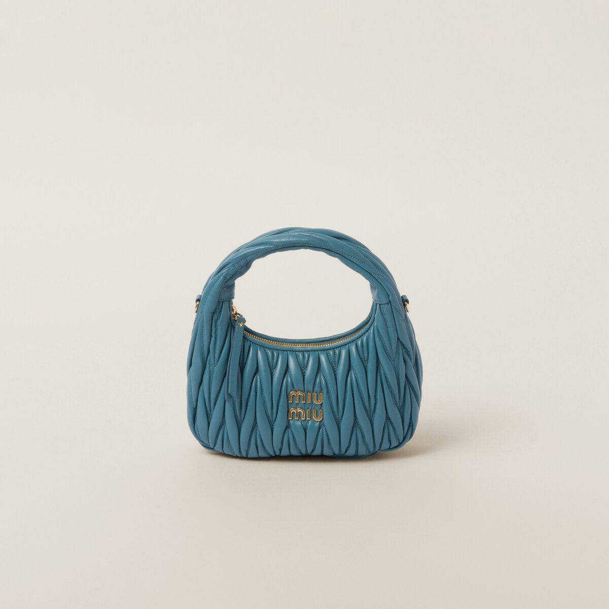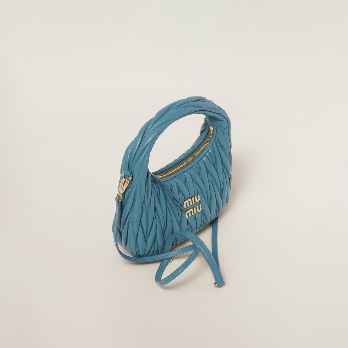 미우미우 스몰 완더 마테라쎄 나파 가죽 호보백 블루
