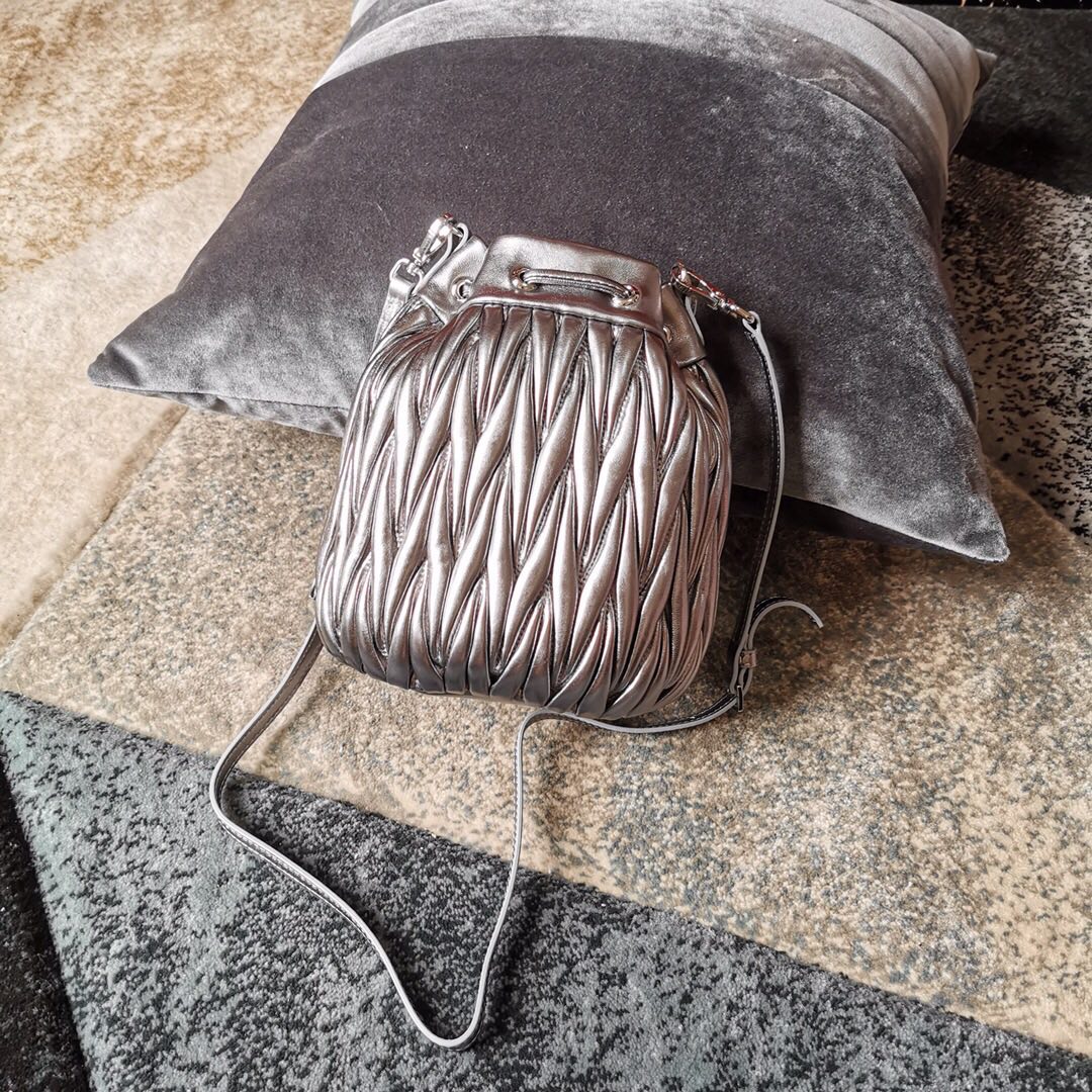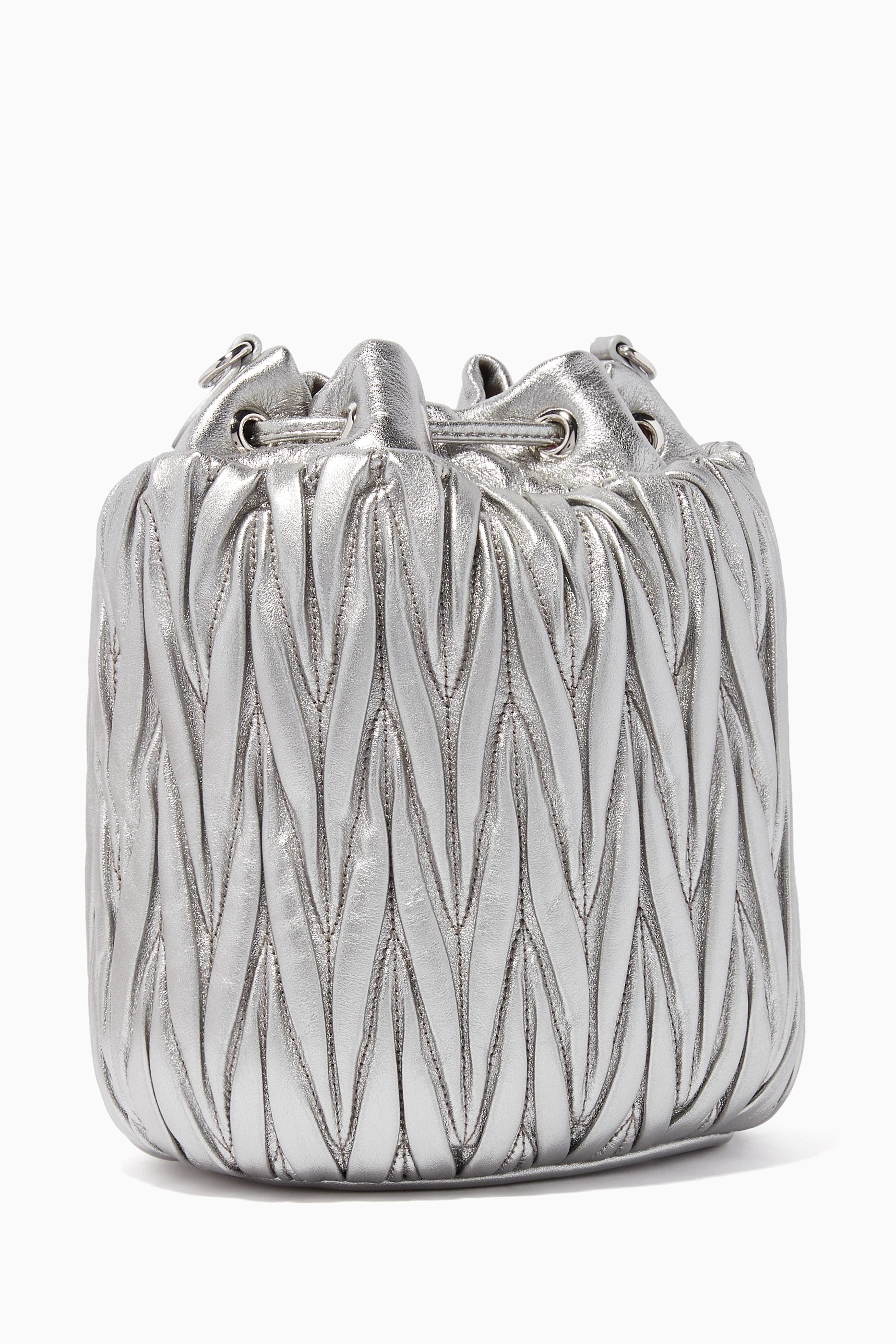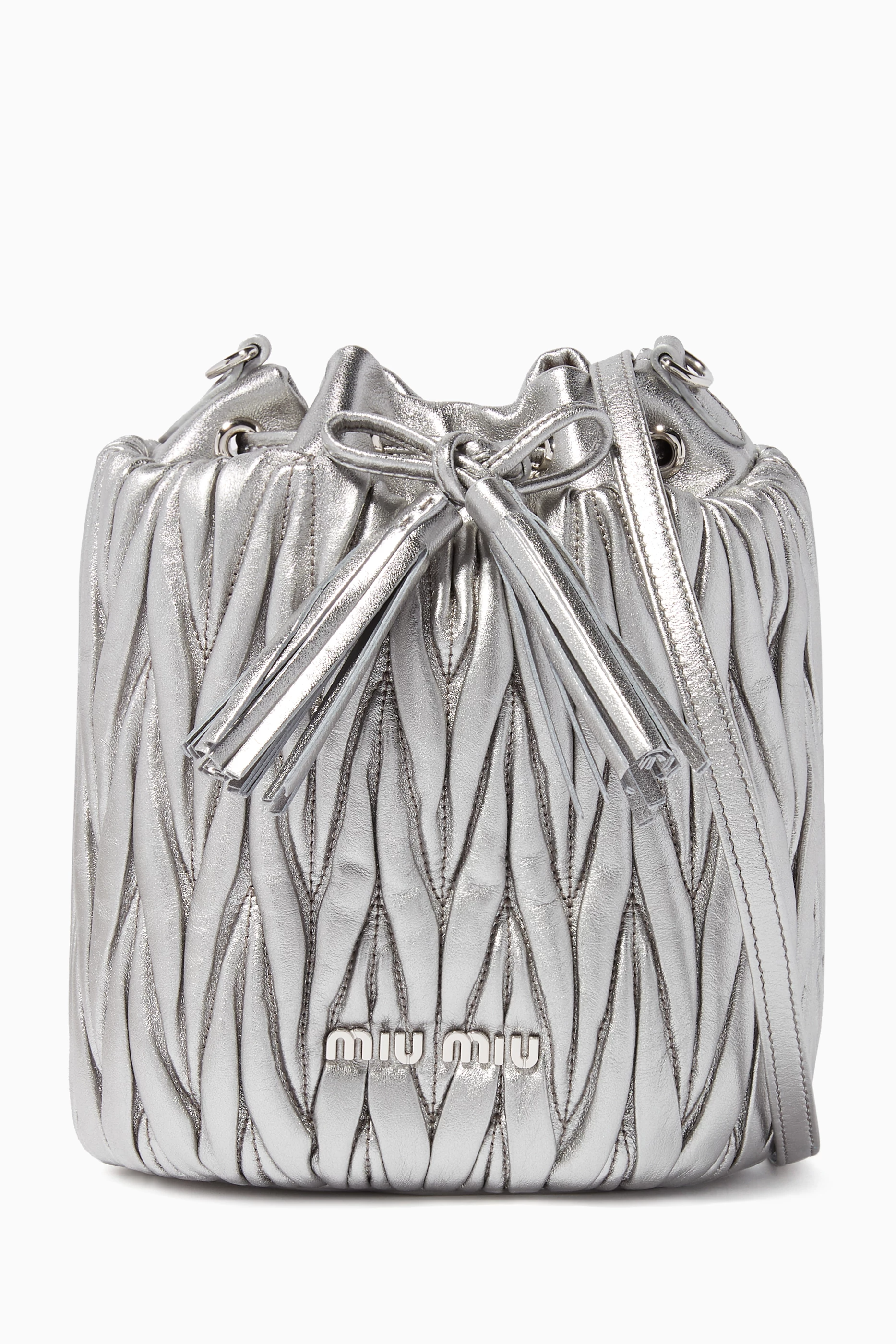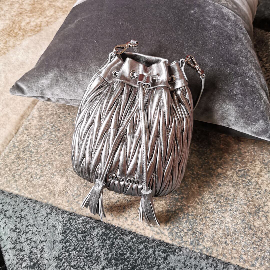 미우미우 마테라쎄 나파 가죽 버킷백 실버