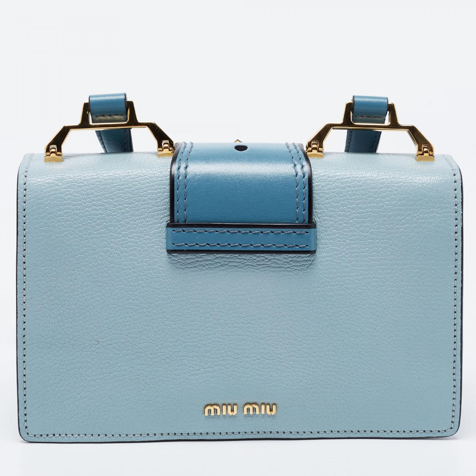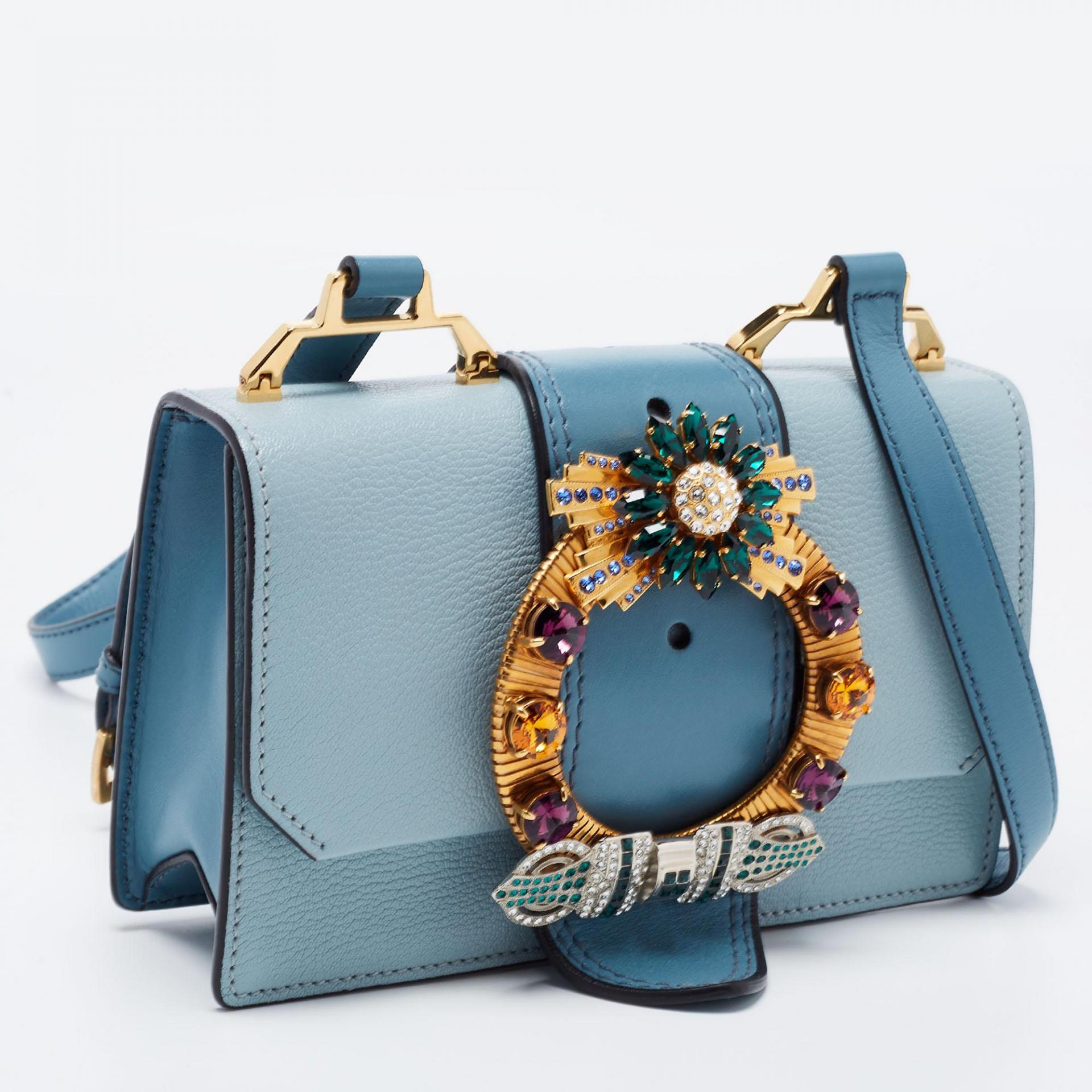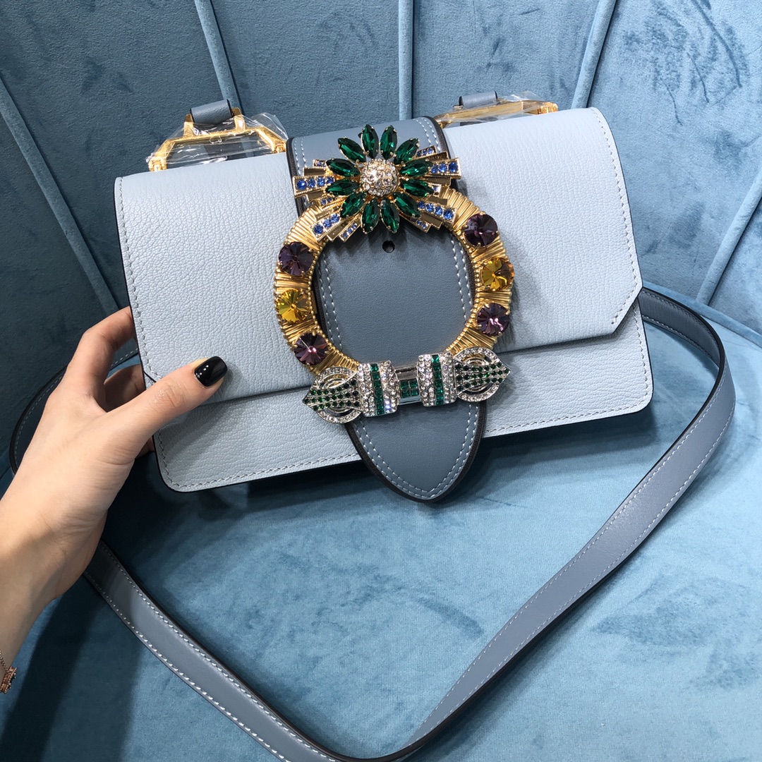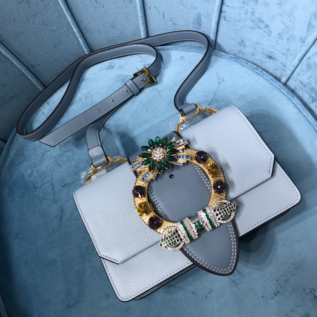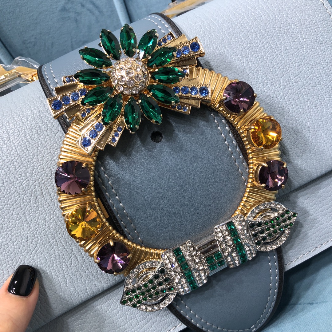 미우미우 크리스탈 버클 플랩 숄더백 블루