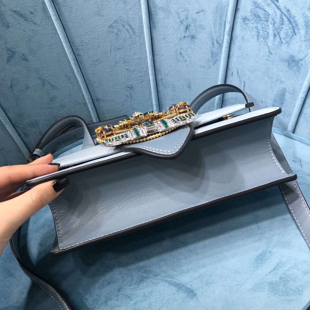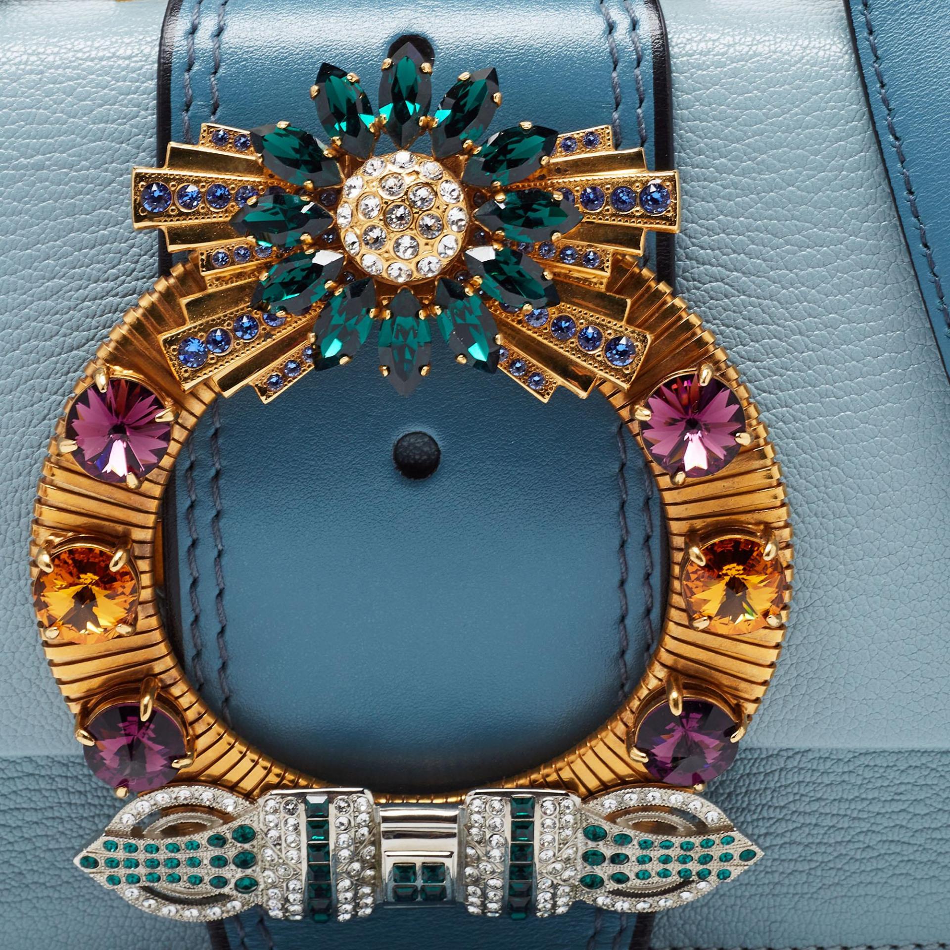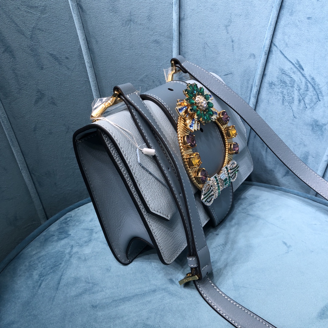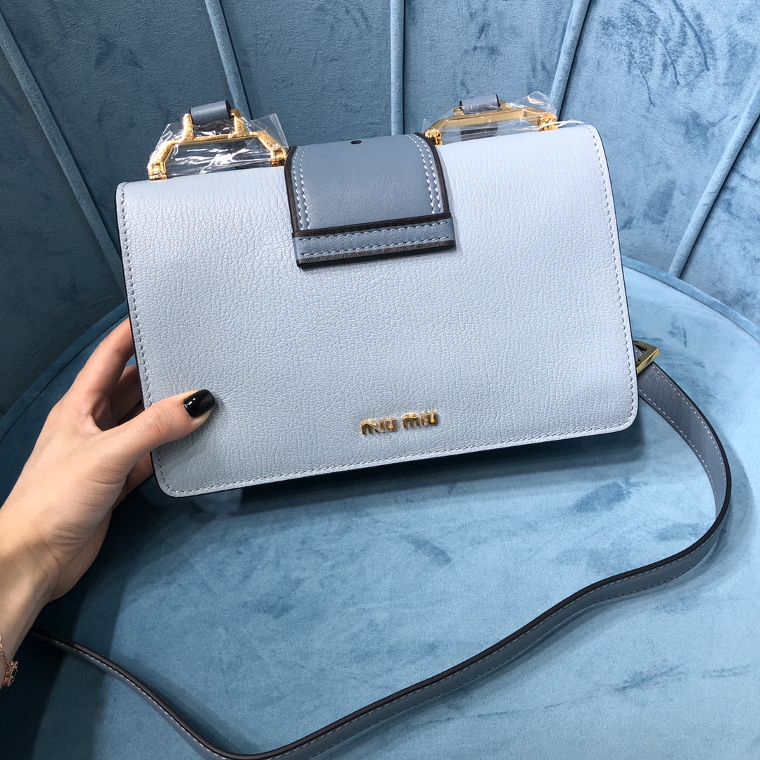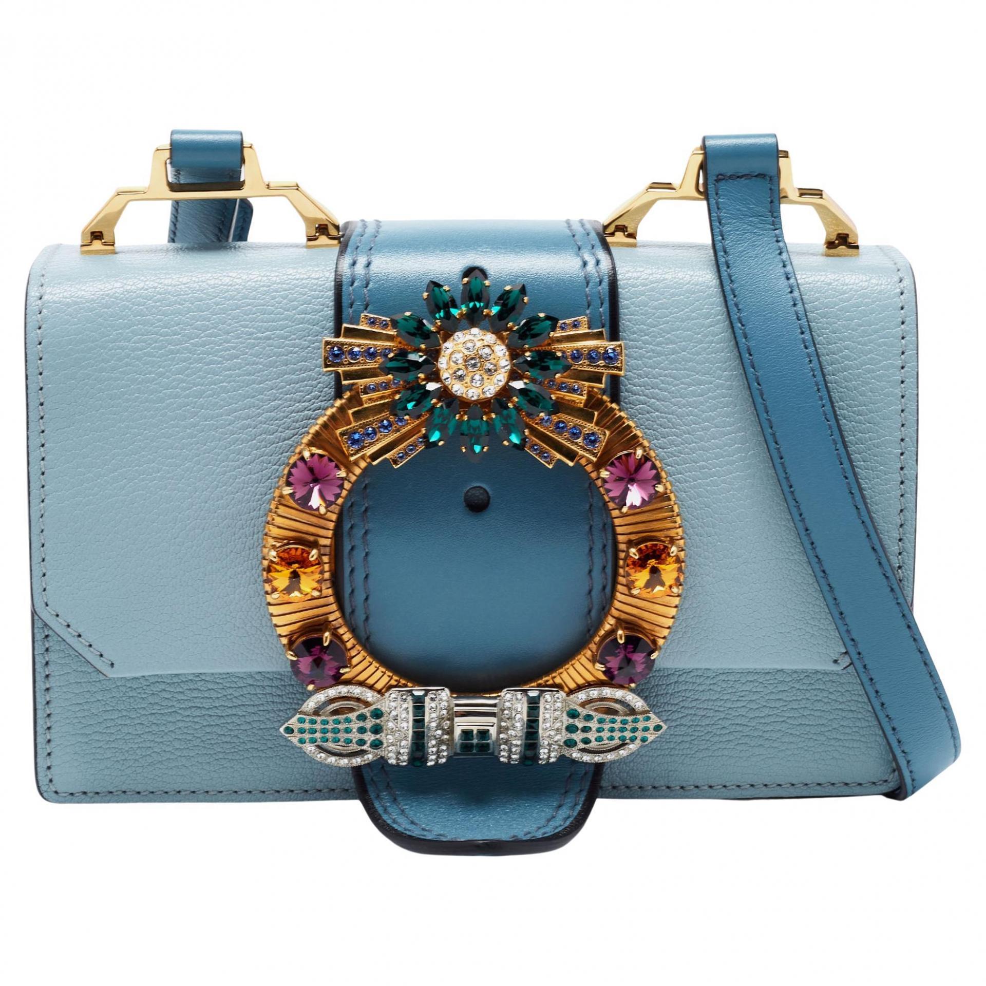 미우미우 크리스탈 버클 플랩 숄더백 블루