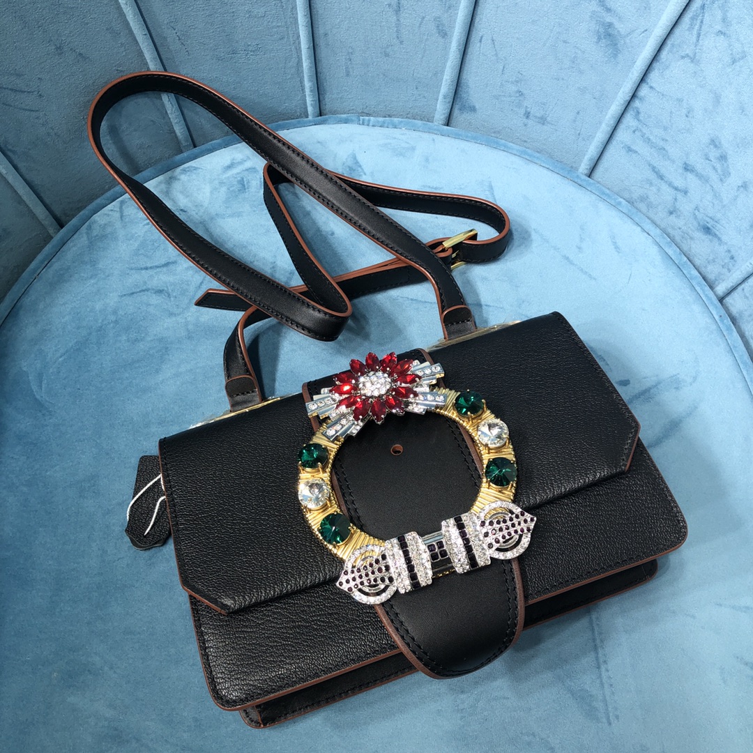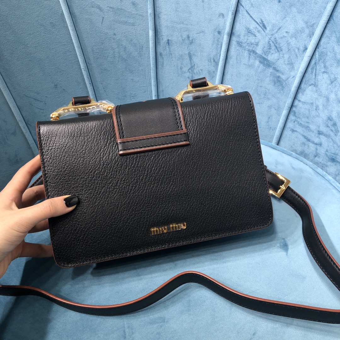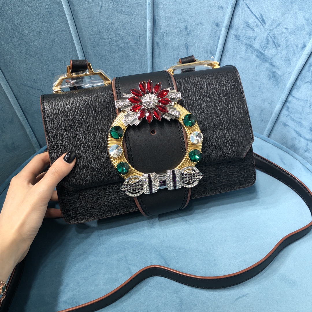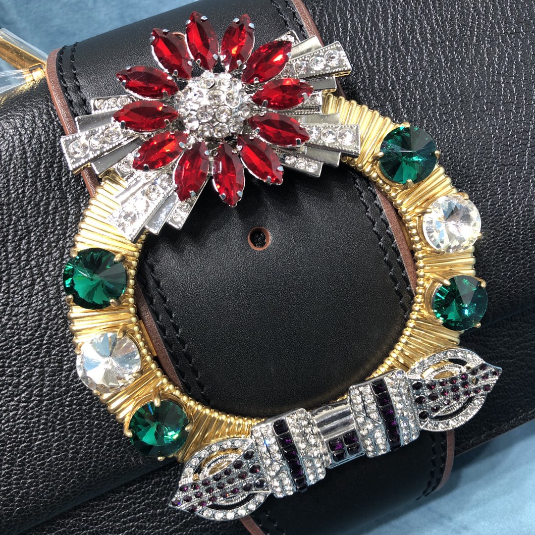 미우미우 크리스탈 버클 플랩 숄더백 블랙브라운