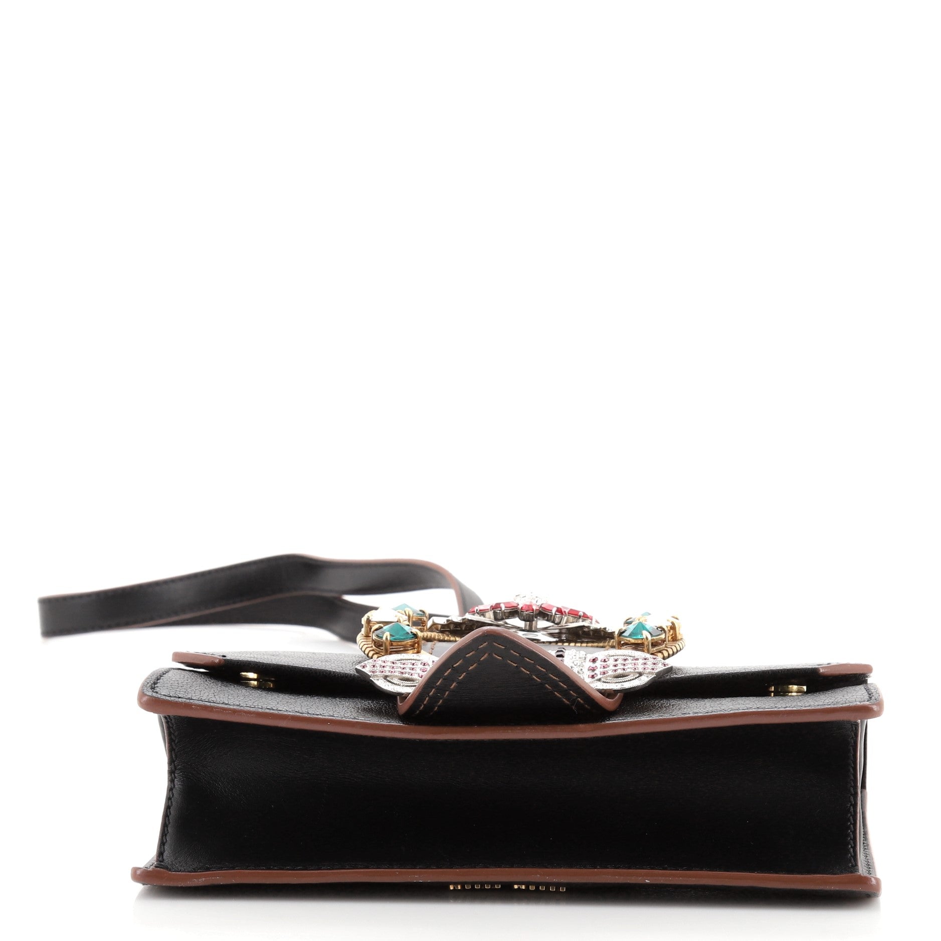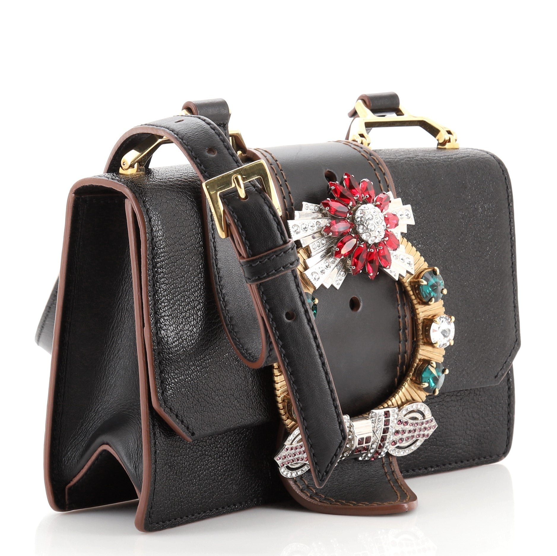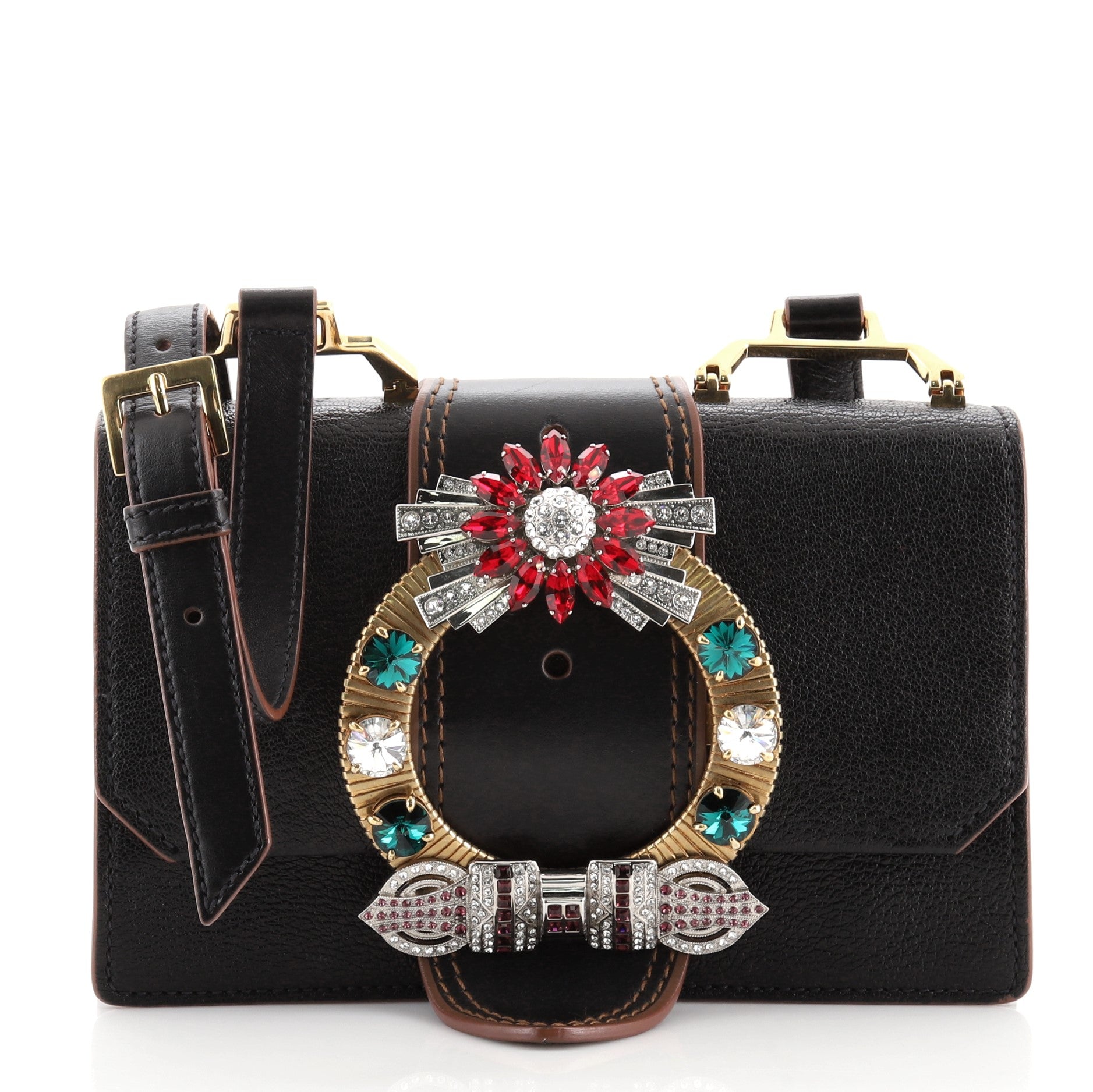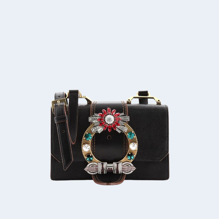 미우미우 크리스탈 버클 플랩 숄더백 블랙브라운