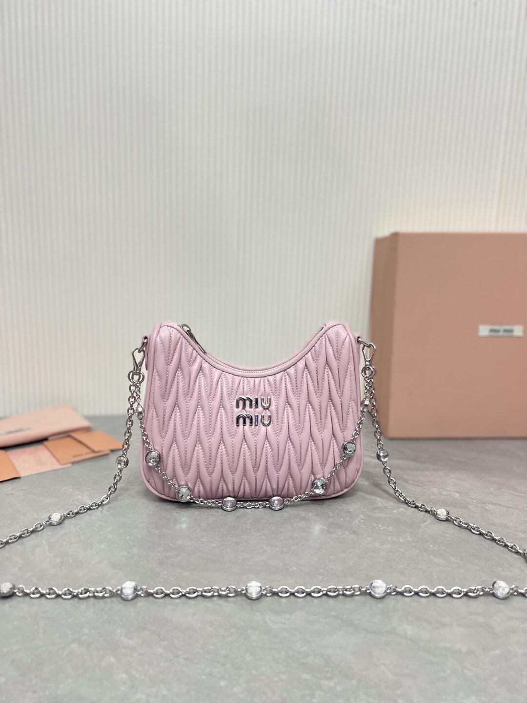 미우미우 마테라쎄 나파 가죽 숄더백 크리스탈 핑크