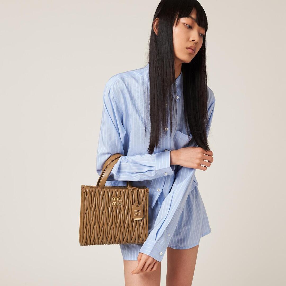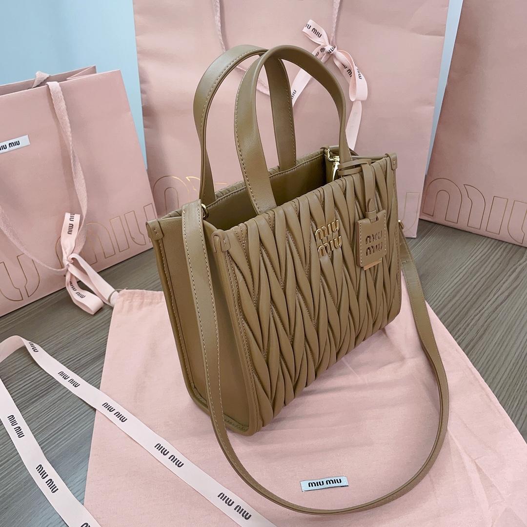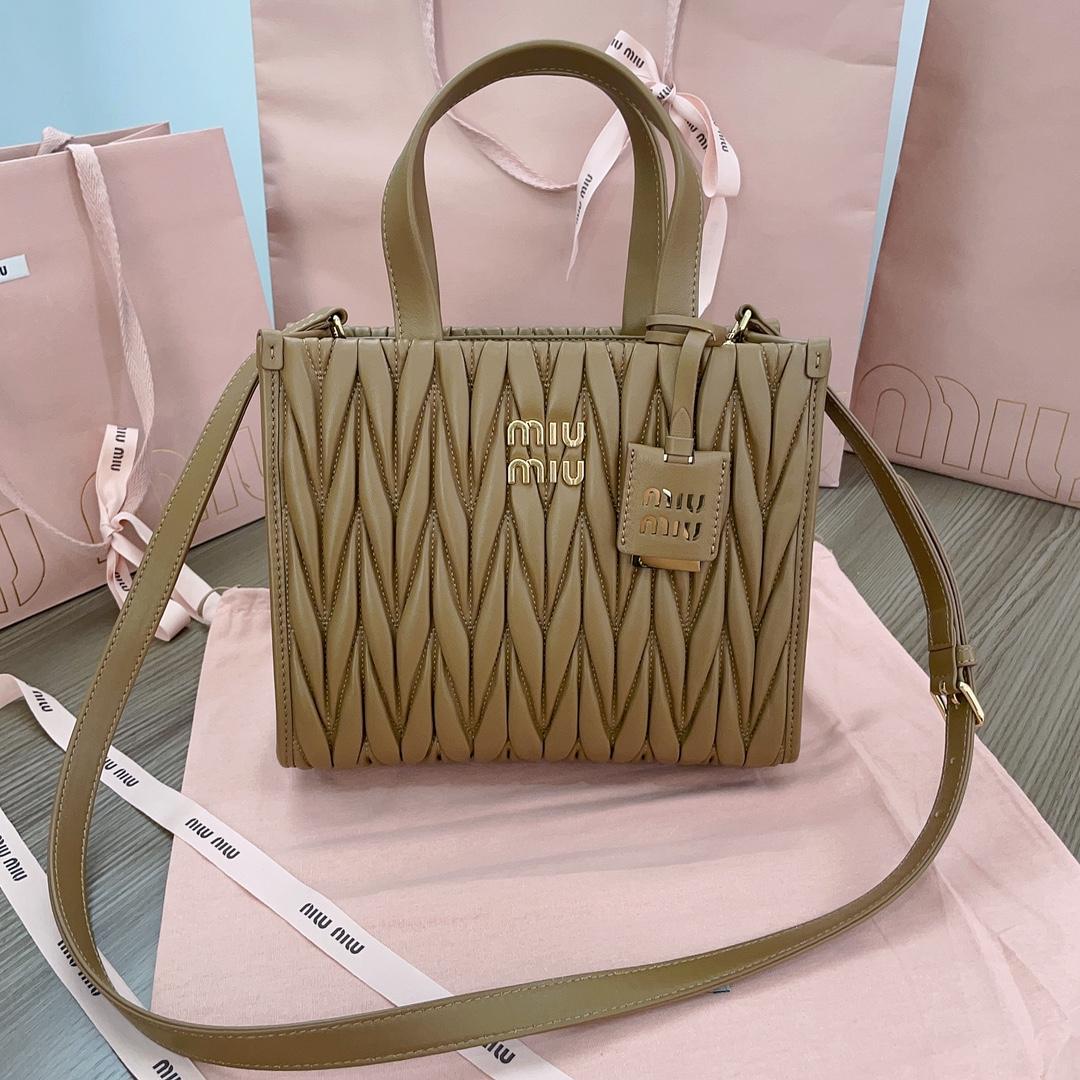 미우미우 마테라쎄 나파 가죽 토트백 브라운