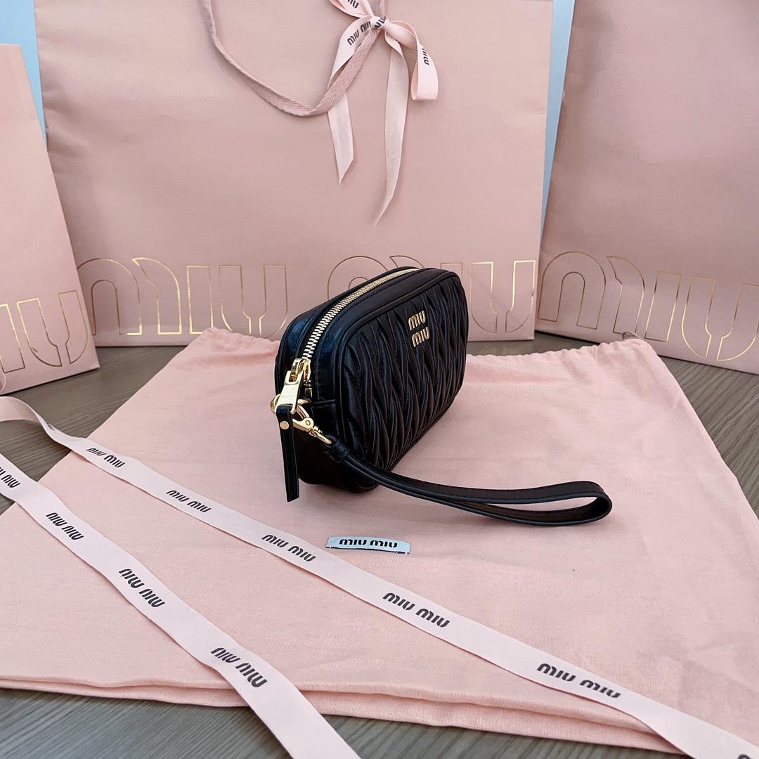 미우미우 마테라쎄 나파 가죽 파우치 블랙