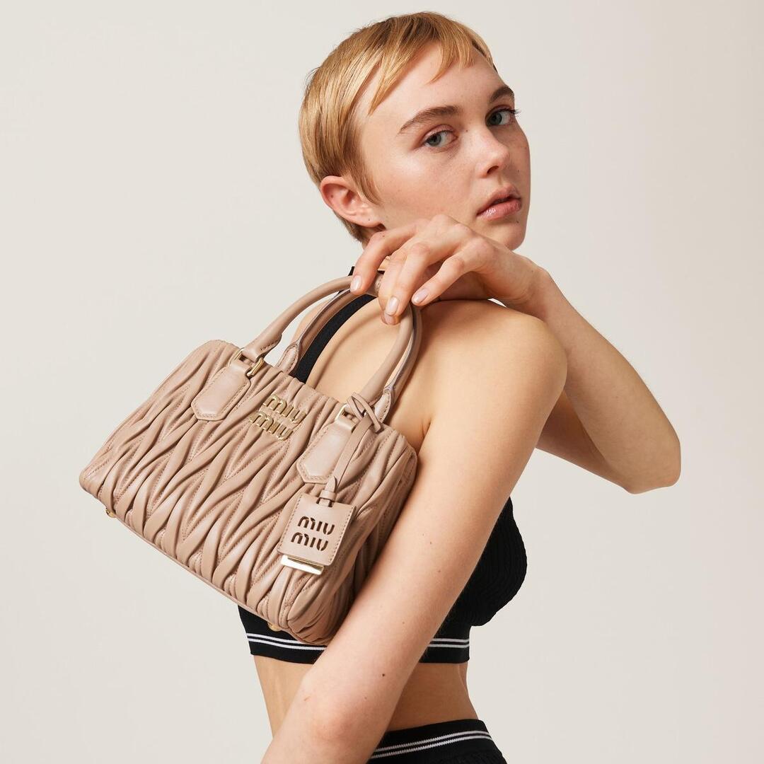 미우미우 마테라쎄 나파 가죽 핸드백 브라운