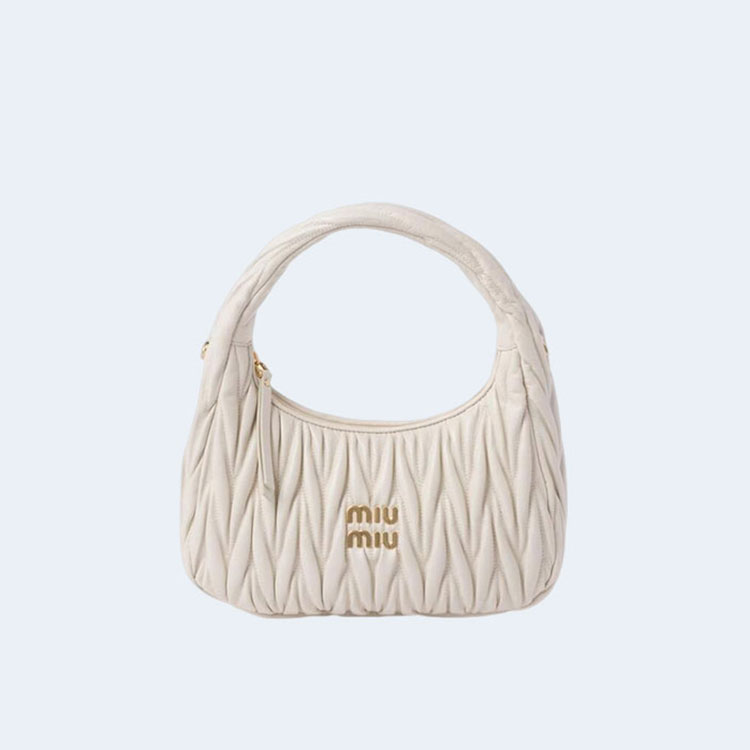 미우미우 미디엄 완더 마테라쎄 나파 가죽 호보백 화이트