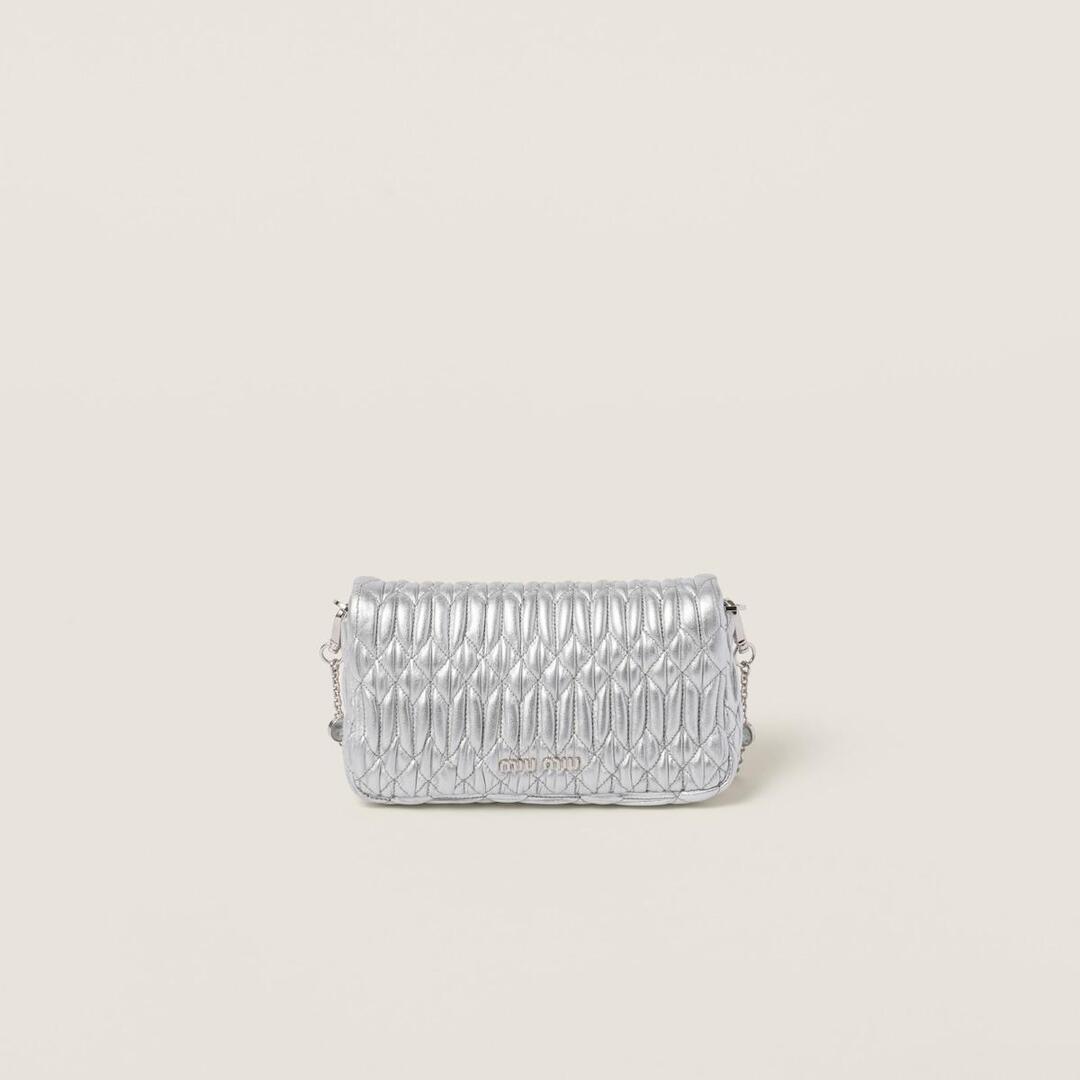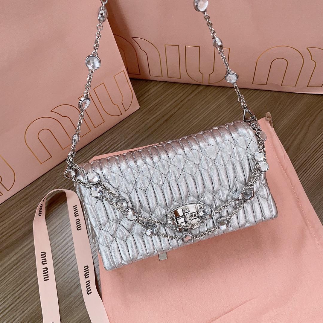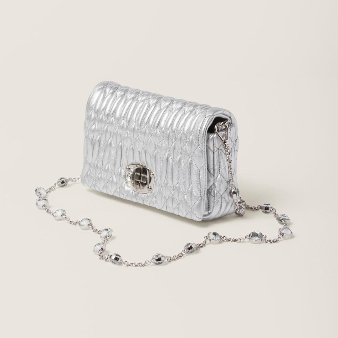 미우미우 마테라쎄 나파 가죽 크리스탈 미니백 실버